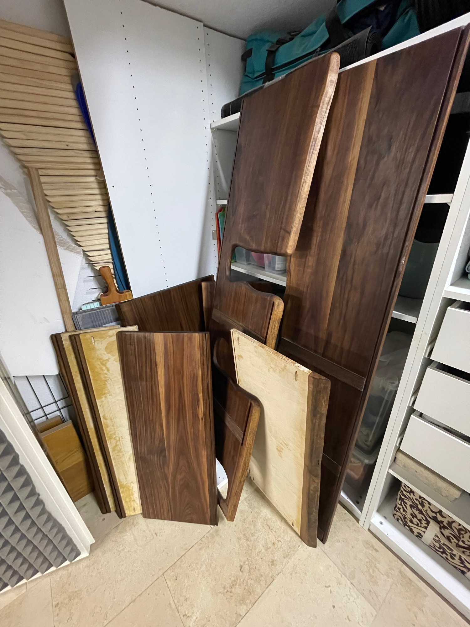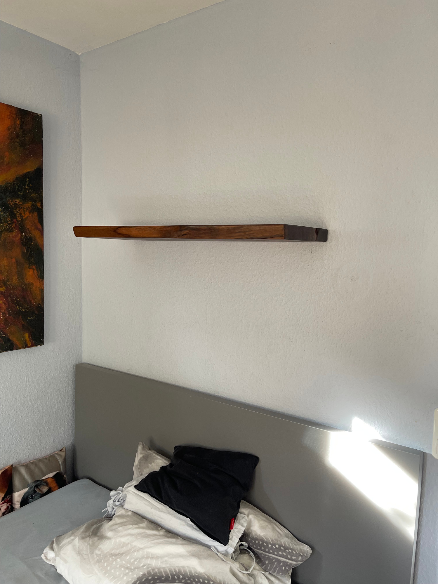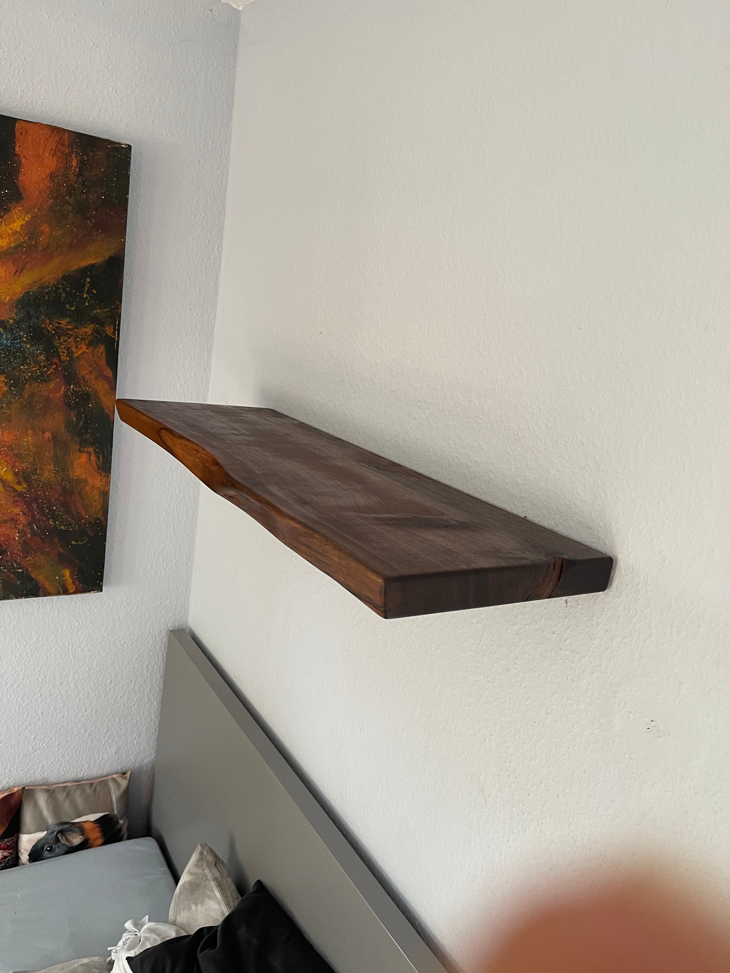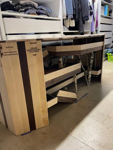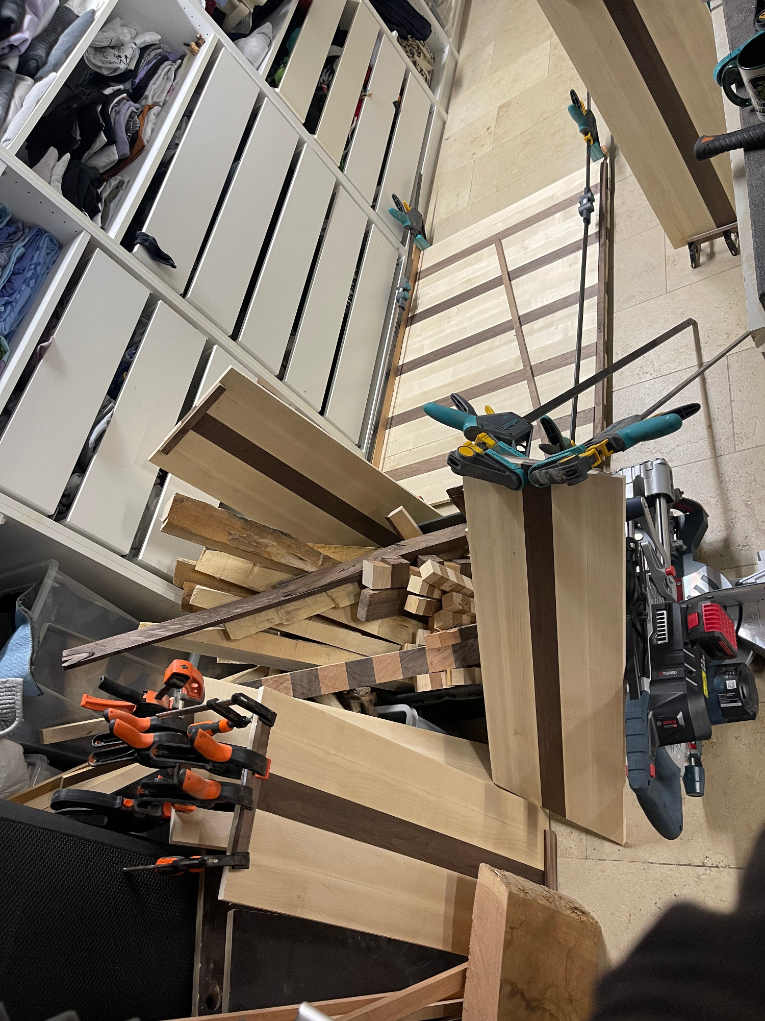 Aufgrund des Verschnitts bleibt viel Holz übrig. Daraus sind bereits verschiedene Projekte entstanden, die ich für mich, Freunde, Bekannte und Verwandte gemacht habe. Dazu gehören unter anderen Schuhregale, Hocker, Holzwandbilder, Tische und Wandregale. Alles wurde aus Massivholz gefertigt. Ich habe das große Glück, in der Nähe einen Edelholz-Großhändler zu haben, was mir ermöglicht, mein Hobby voll auszuleben.