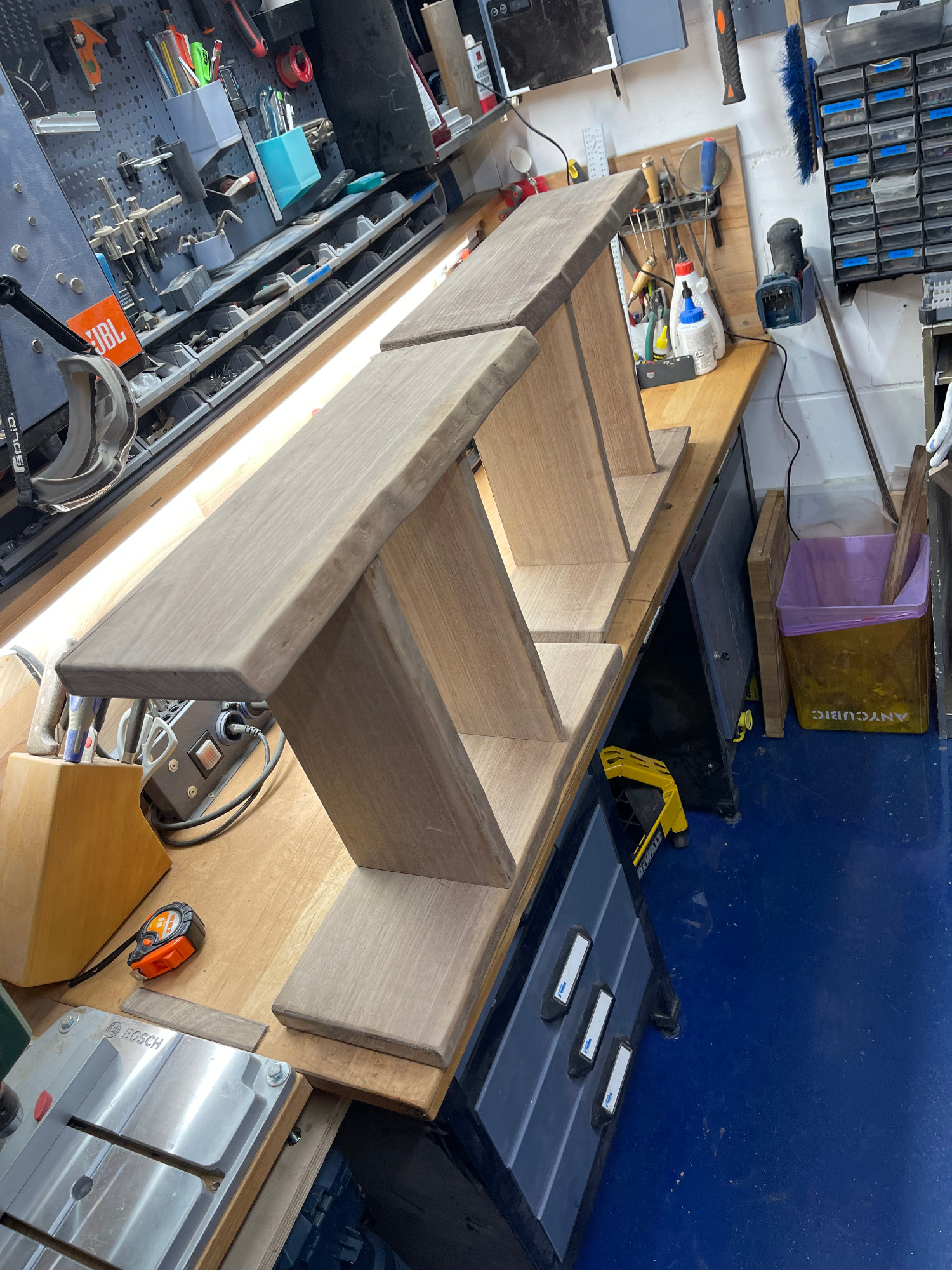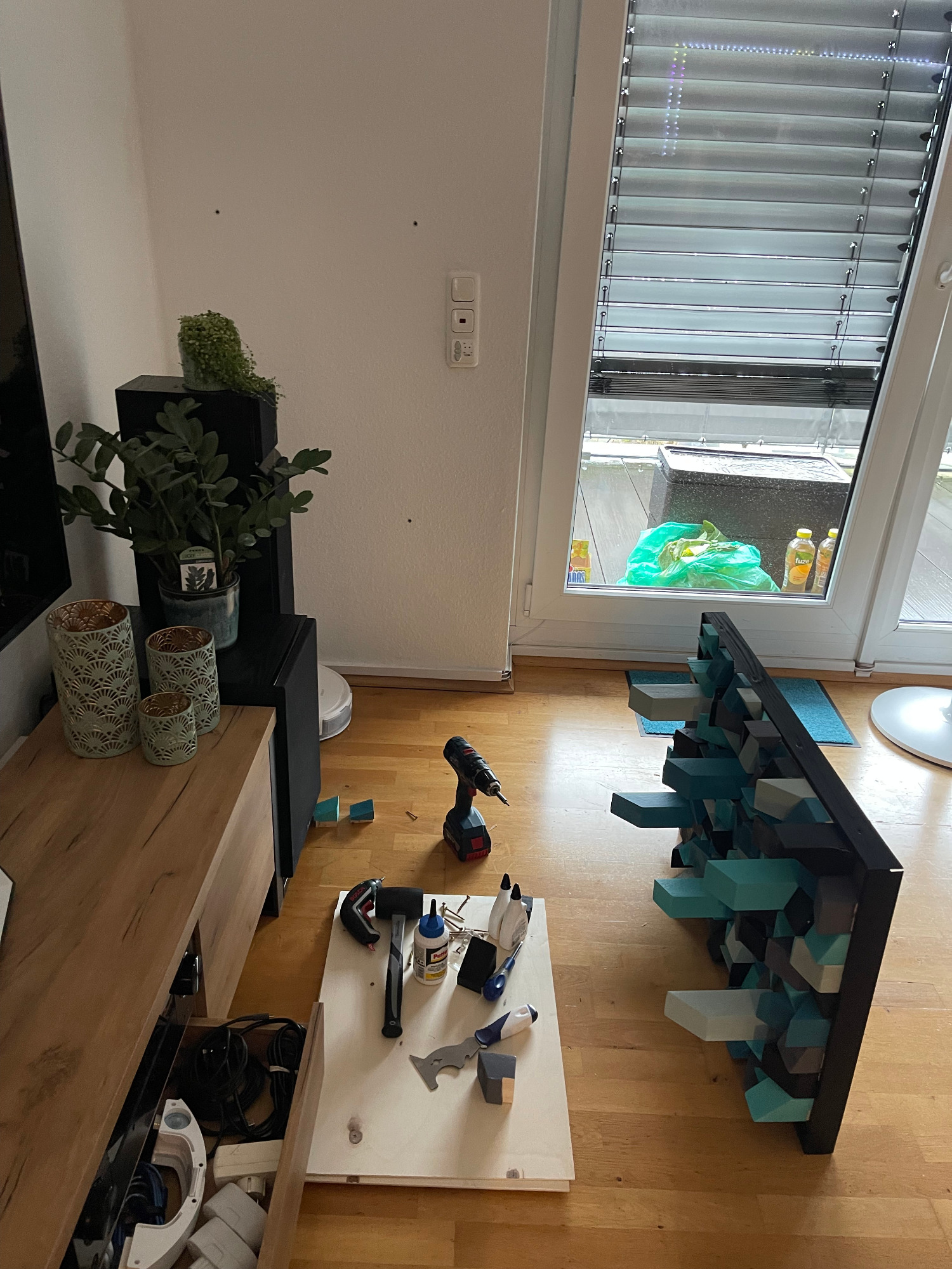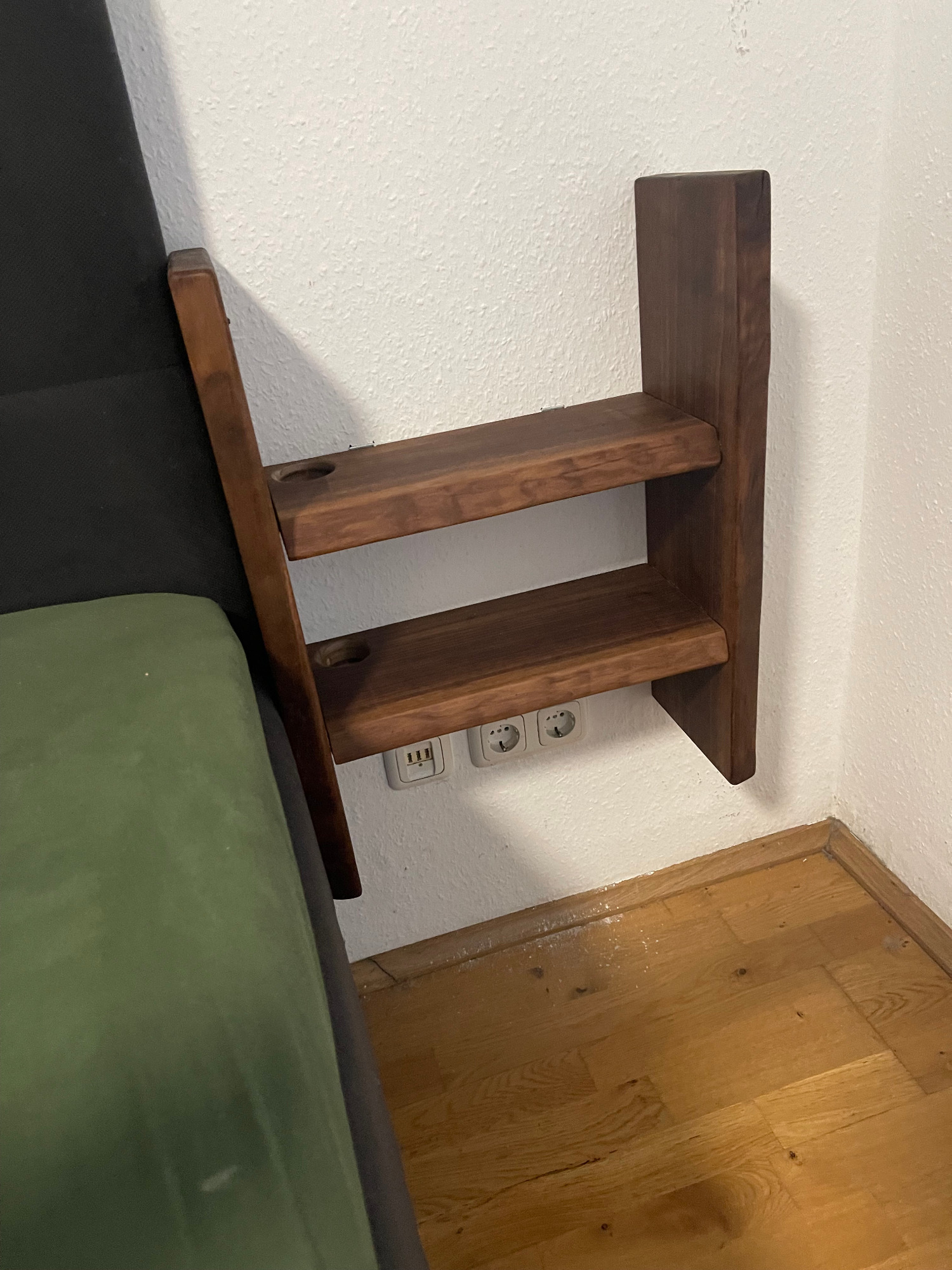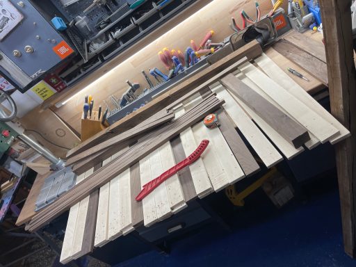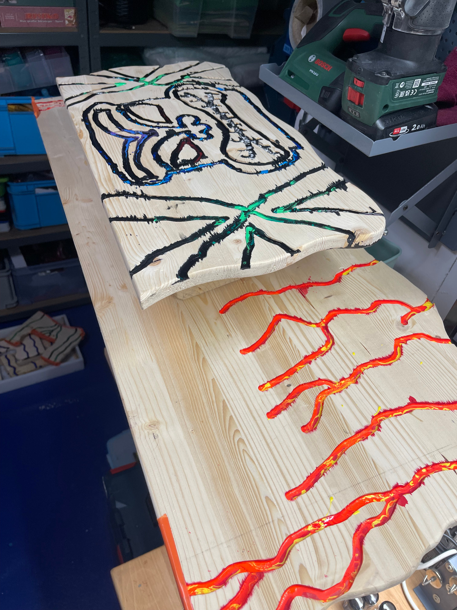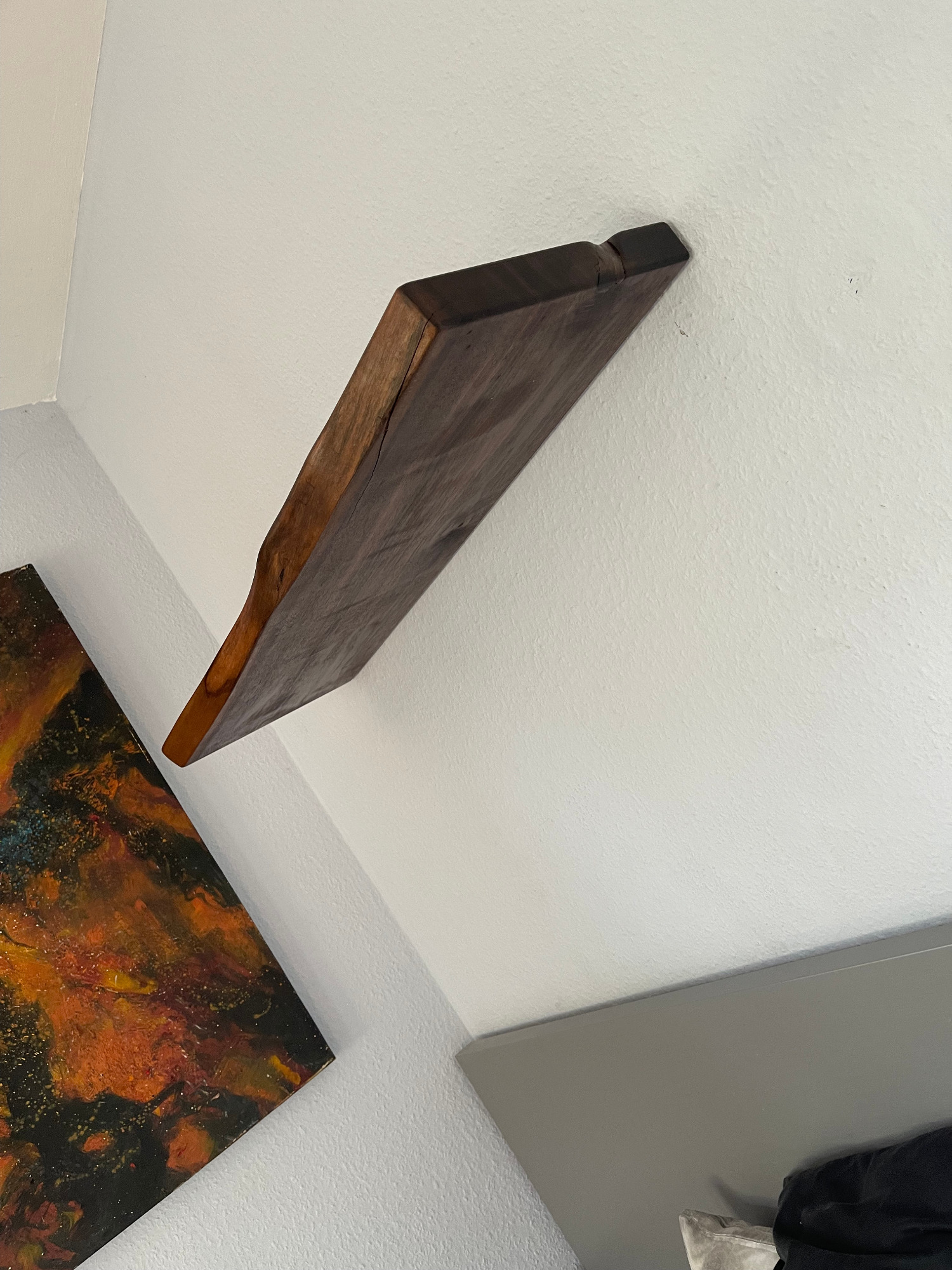 Aufgrund des Verschnitts bleibt viel Holz übrig. Daraus sind bereits verschiedene Projekte entstanden, die ich für mich, Freunde, Bekannte und Verwandte gemacht habe. Dazu gehören unter anderen Schuhregale, Hocker, Holzwandbilder, Tische und Wandregale. Alles wurde aus Massivholz gefertigt. Ich habe das große Glück, in der Nähe einen Edelholz-Großhändler zu haben, was mir ermöglicht, mein Hobby voll auszuleben.