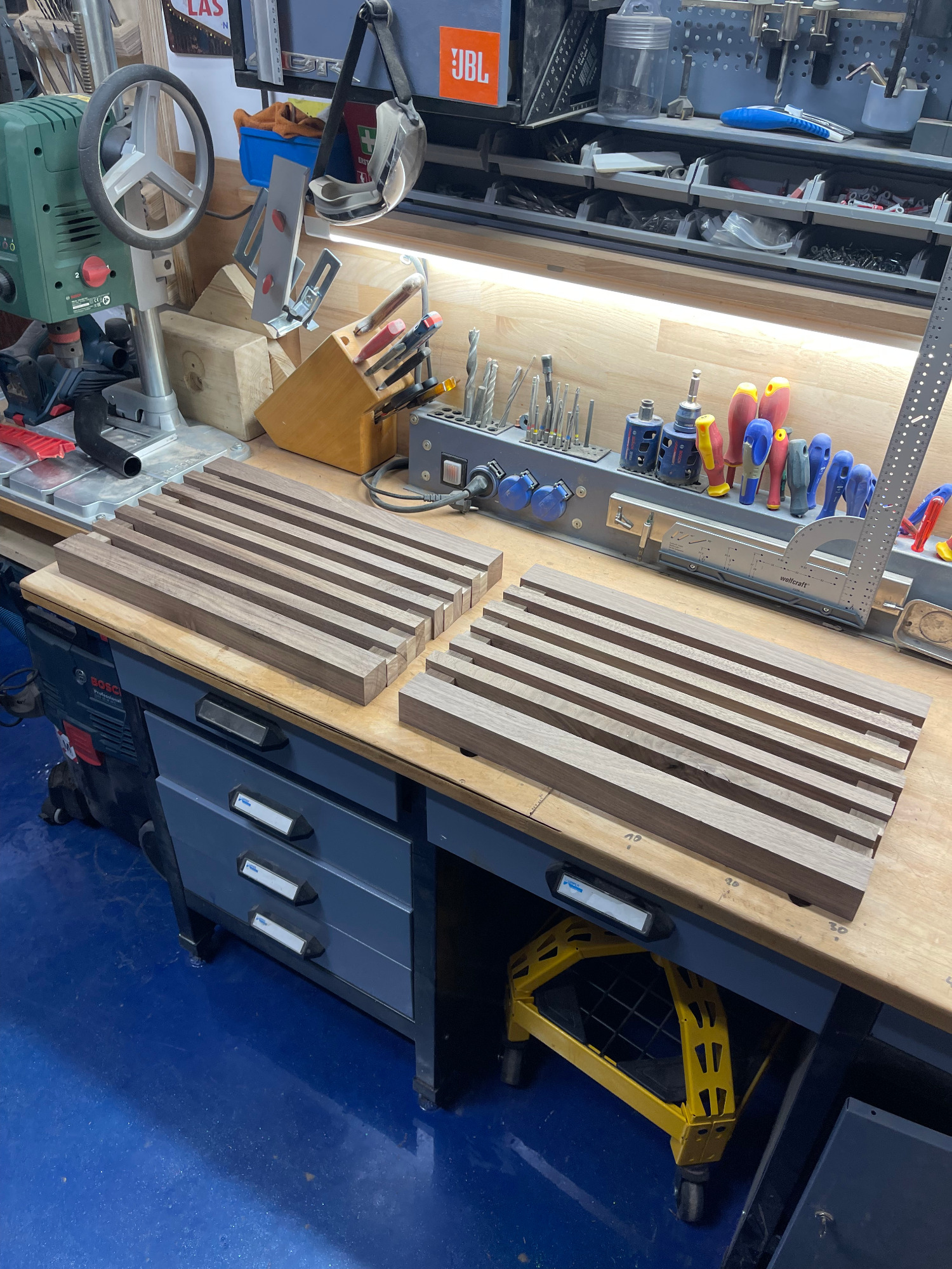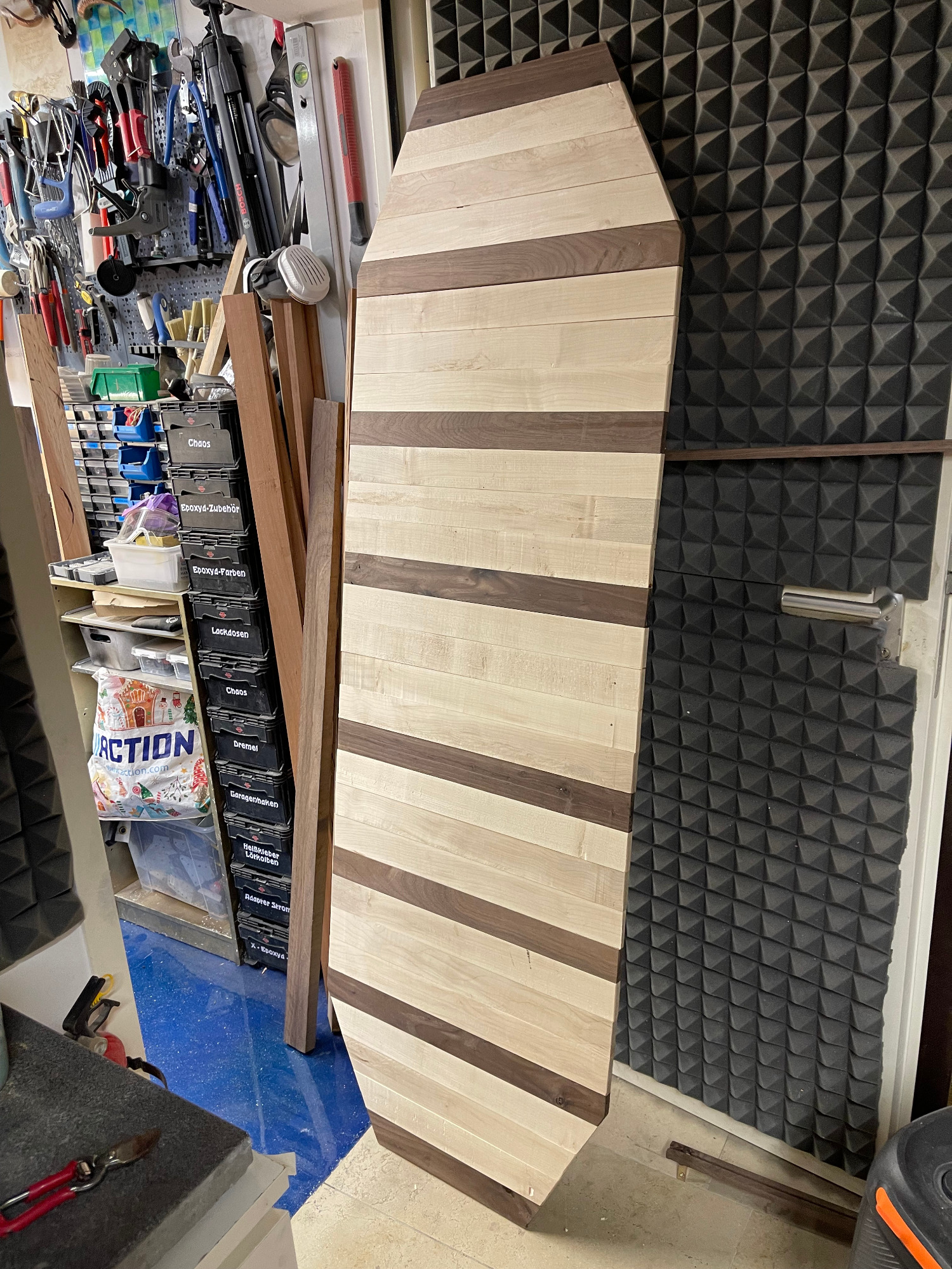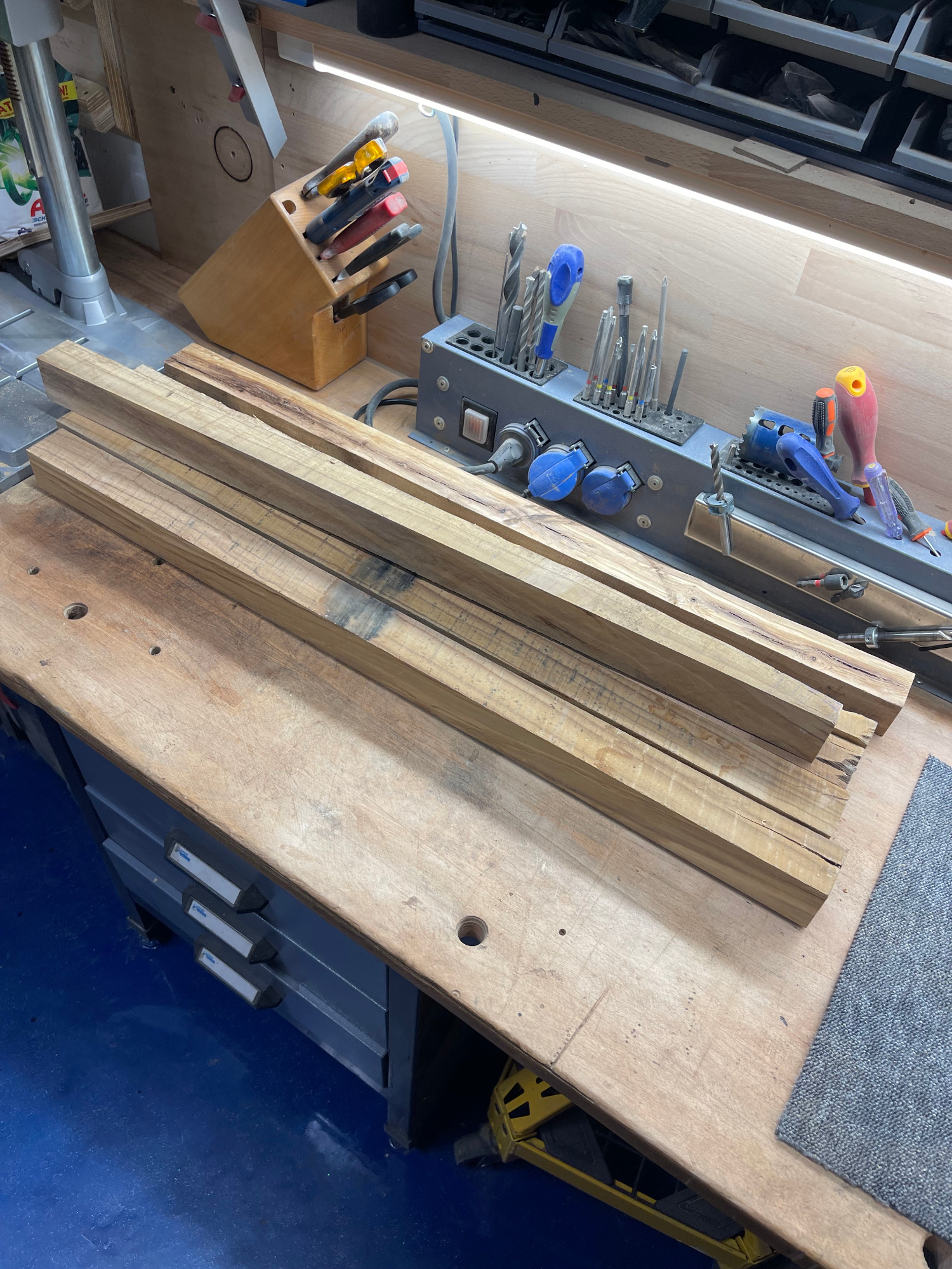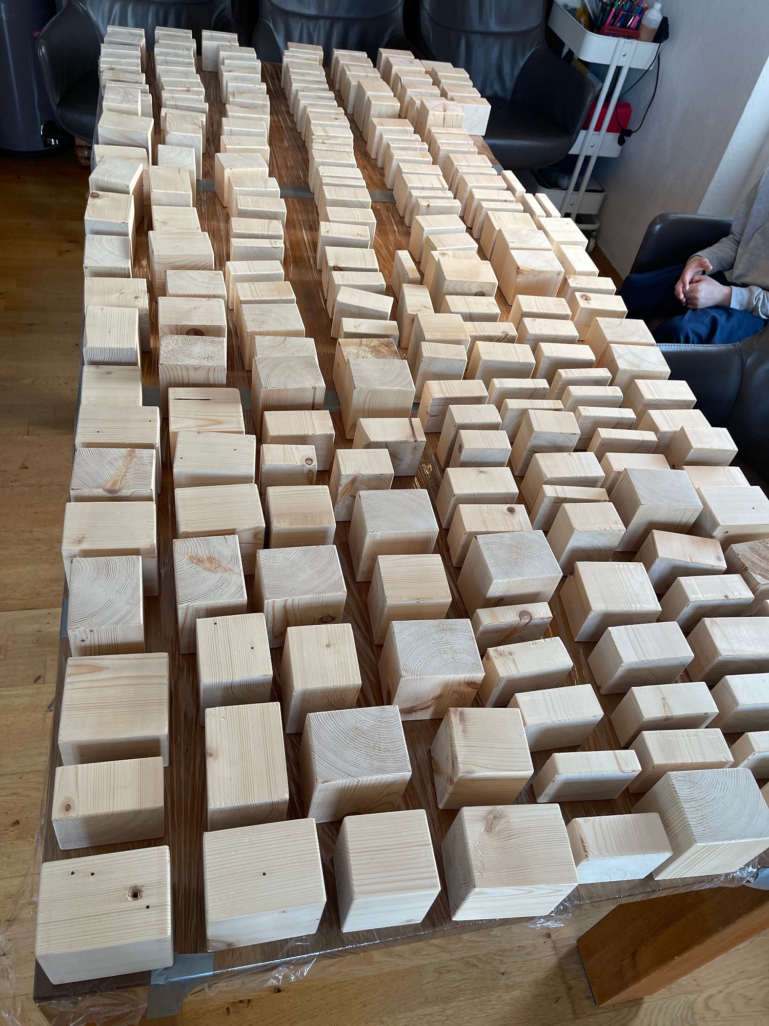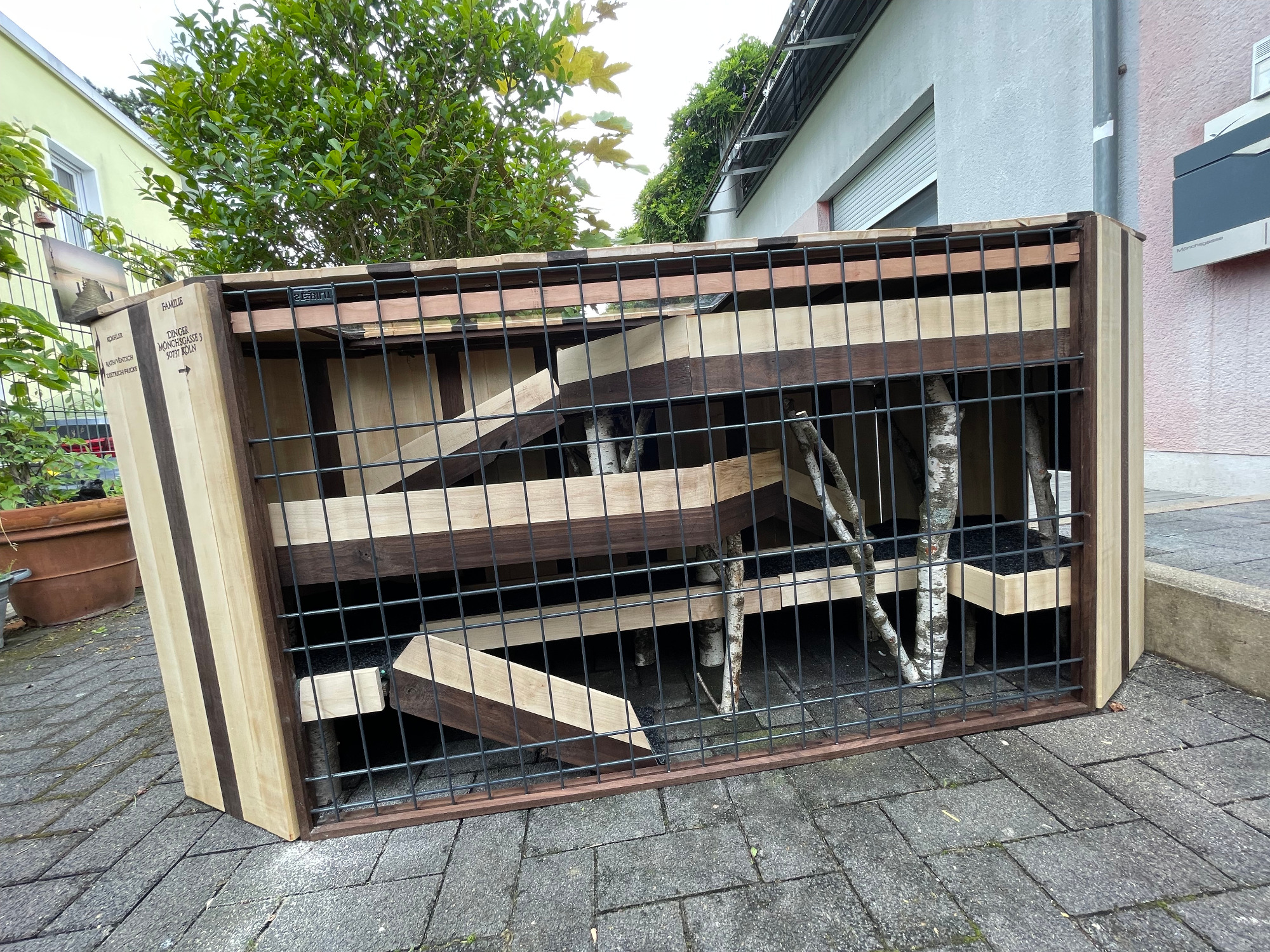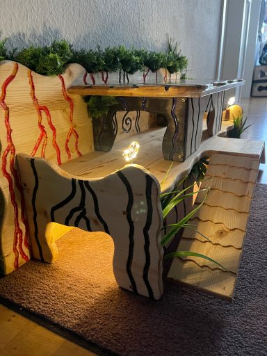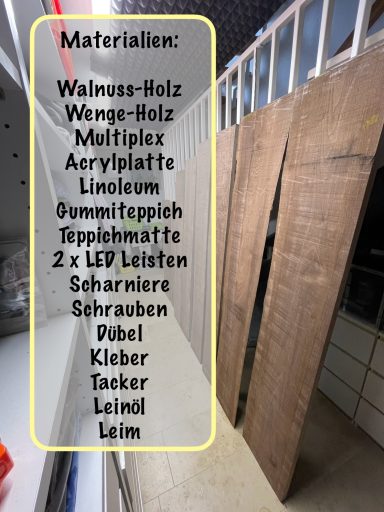 Aufgrund des Verschnitts bleibt viel Holz übrig. Daraus sind bereits verschiedene Projekte entstanden, die ich für mich, Freunde, Bekannte und Verwandte gemacht habe. Dazu gehören unter anderen Schuhregale, Hocker, Holzwandbilder, Tische und Wandregale. Alles wurde aus Massivholz gefertigt. Ich habe das große Glück, in der Nähe einen Edelholz-Großhändler zu haben, was mir ermöglicht, mein Hobby voll auszuleben.