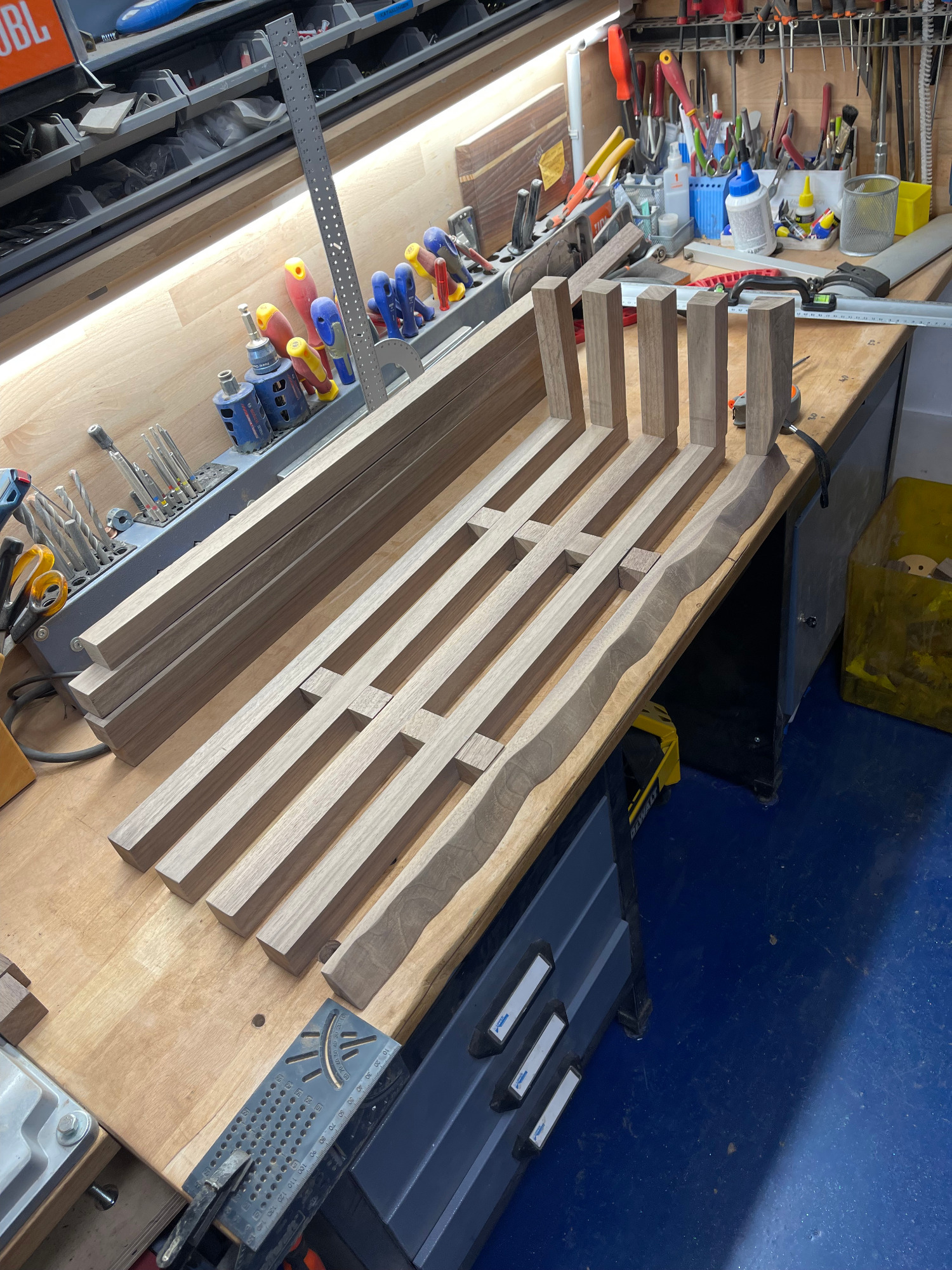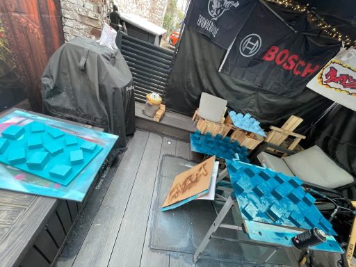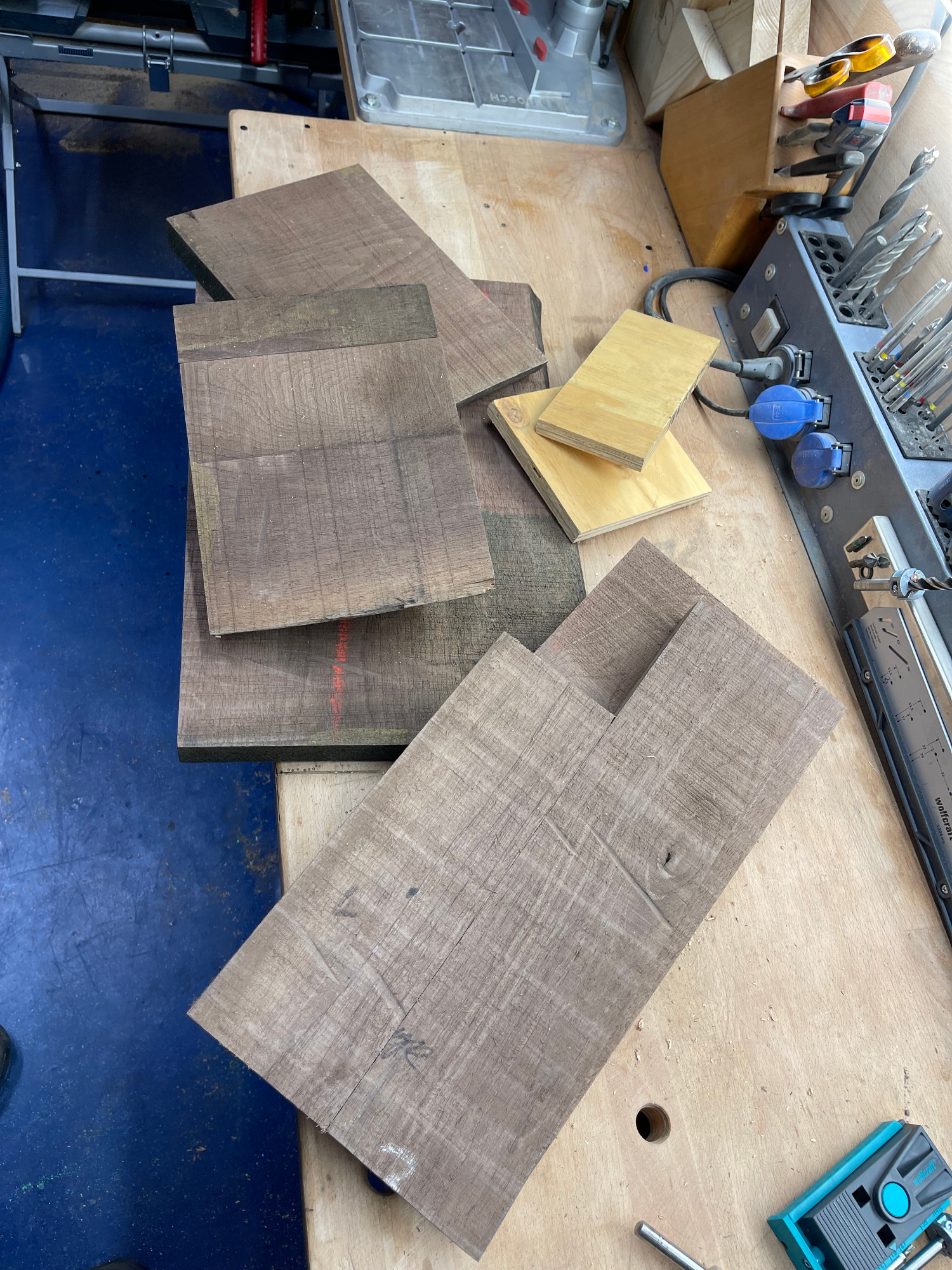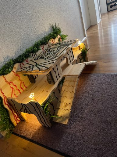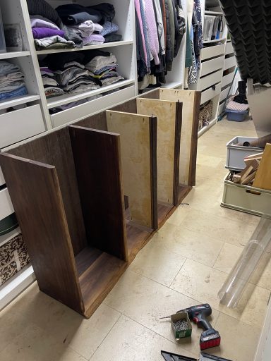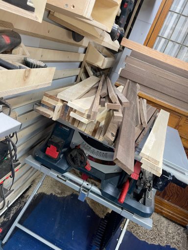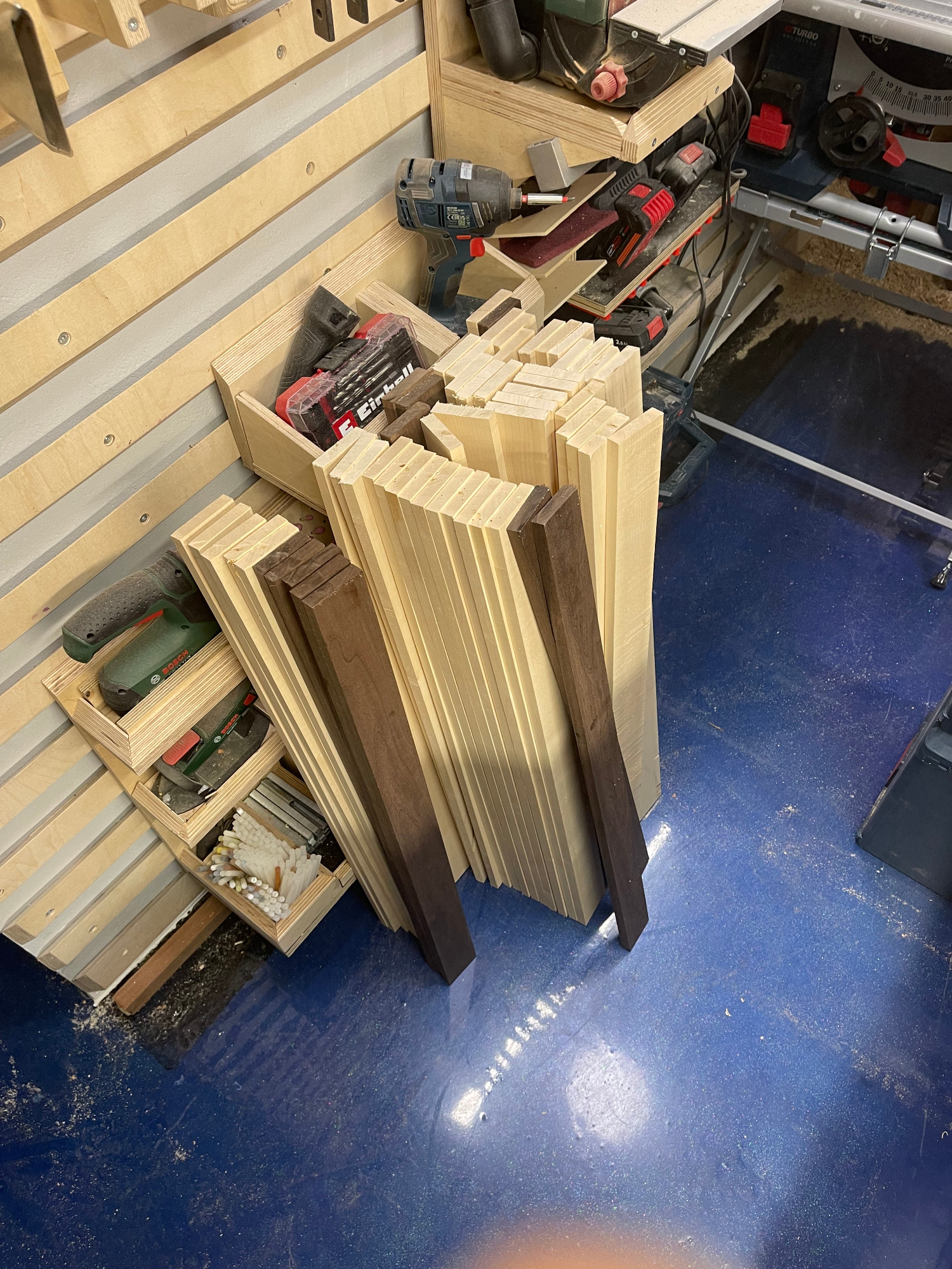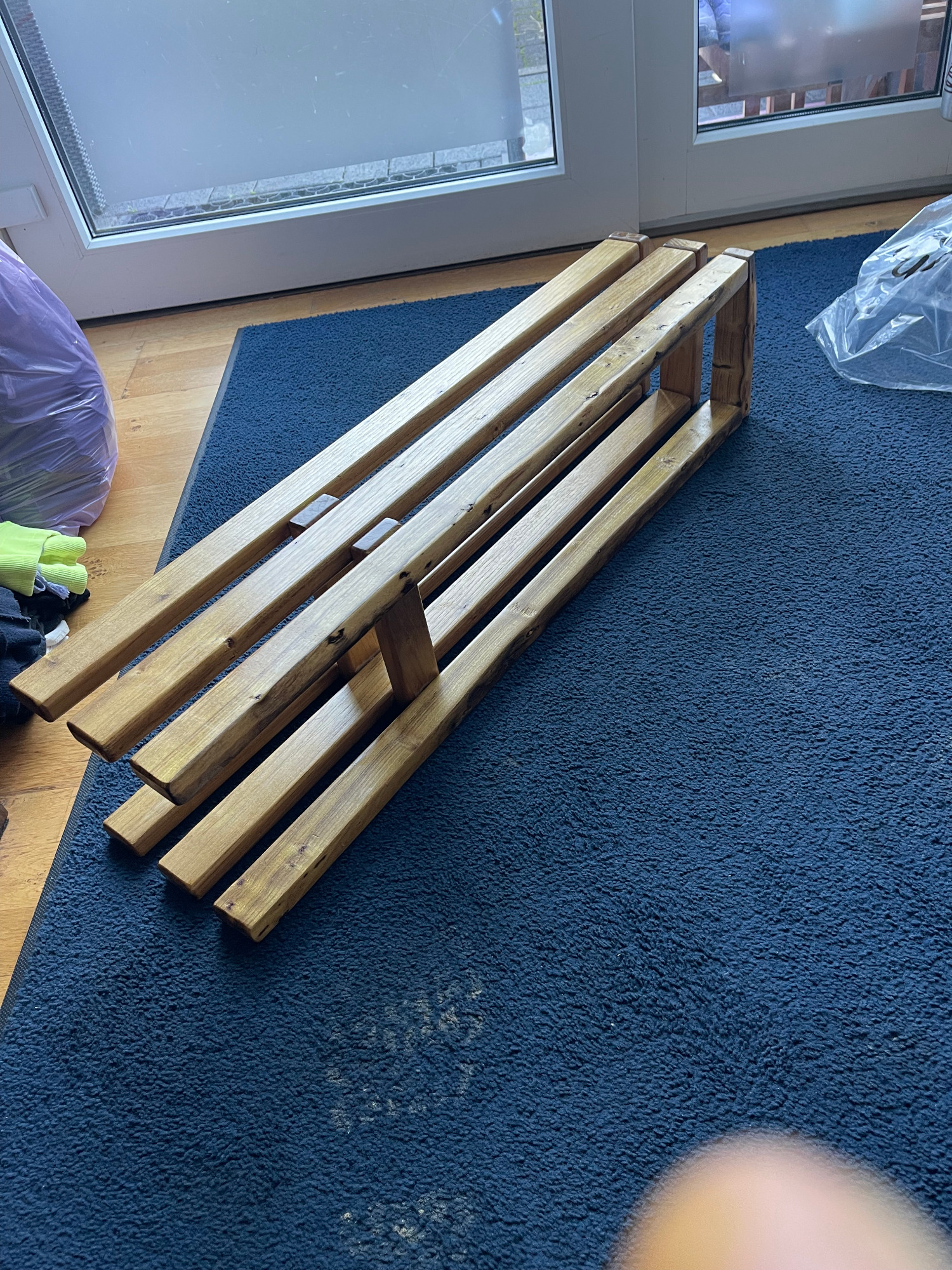 Aufgrund des Verschnitts bleibt viel Holz übrig. Daraus sind bereits verschiedene Projekte entstanden, die ich für mich, Freunde, Bekannte und Verwandte gemacht habe. Dazu gehören unter anderen Schuhregale, Hocker, Holzwandbilder, Tische und Wandregale. Alles wurde aus Massivholz gefertigt. Ich habe das große Glück, in der Nähe einen Edelholz-Großhändler zu haben, was mir ermöglicht, mein Hobby voll auszuleben.