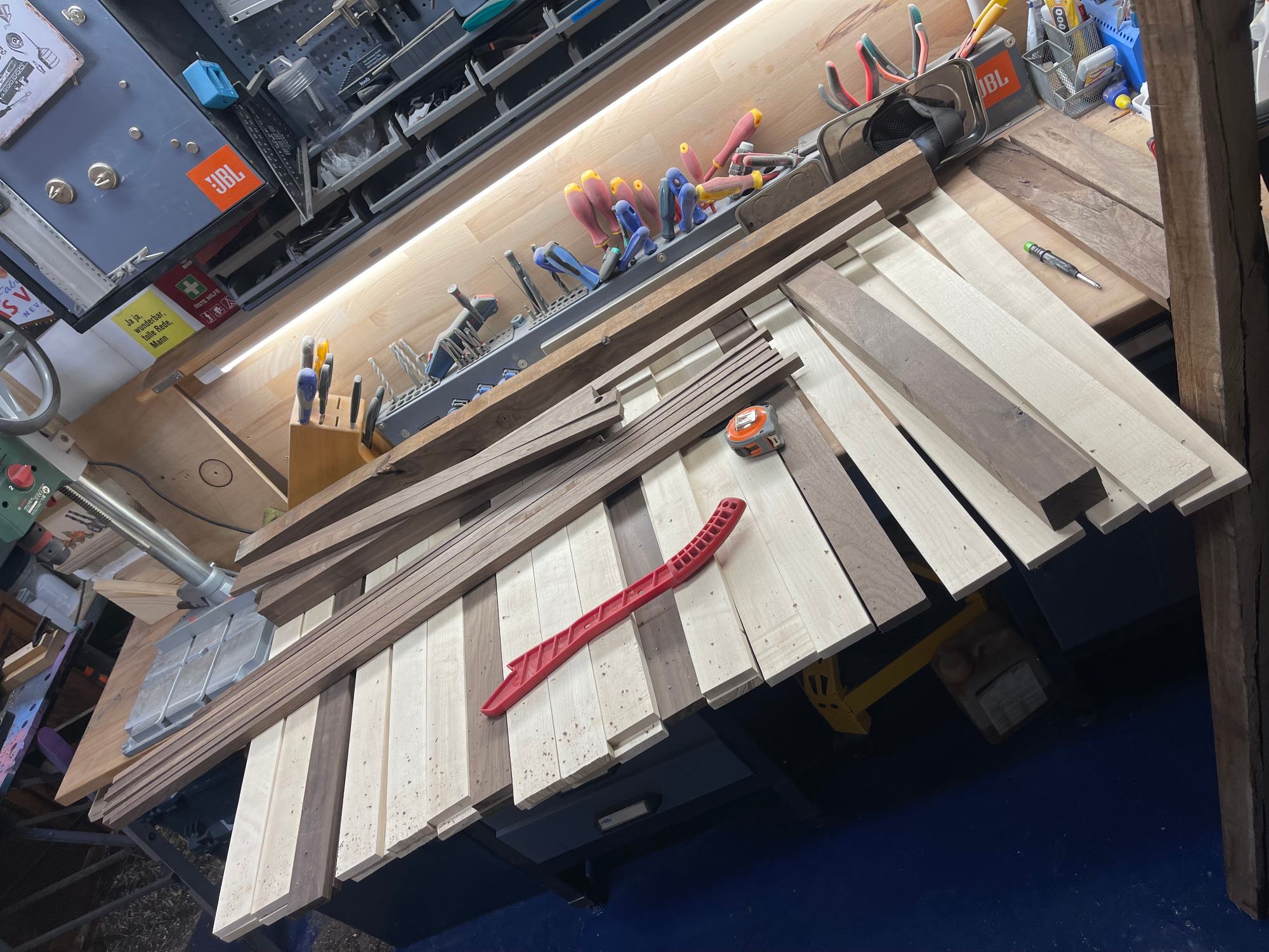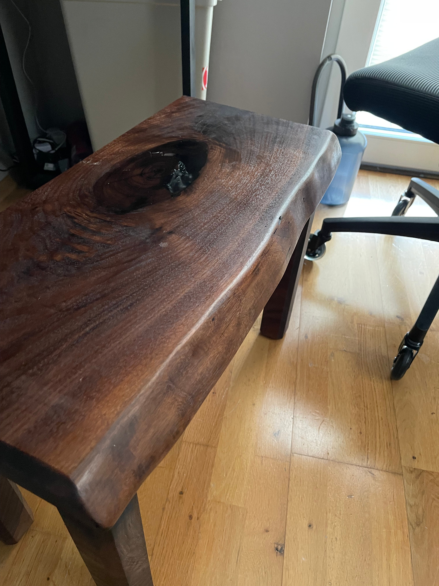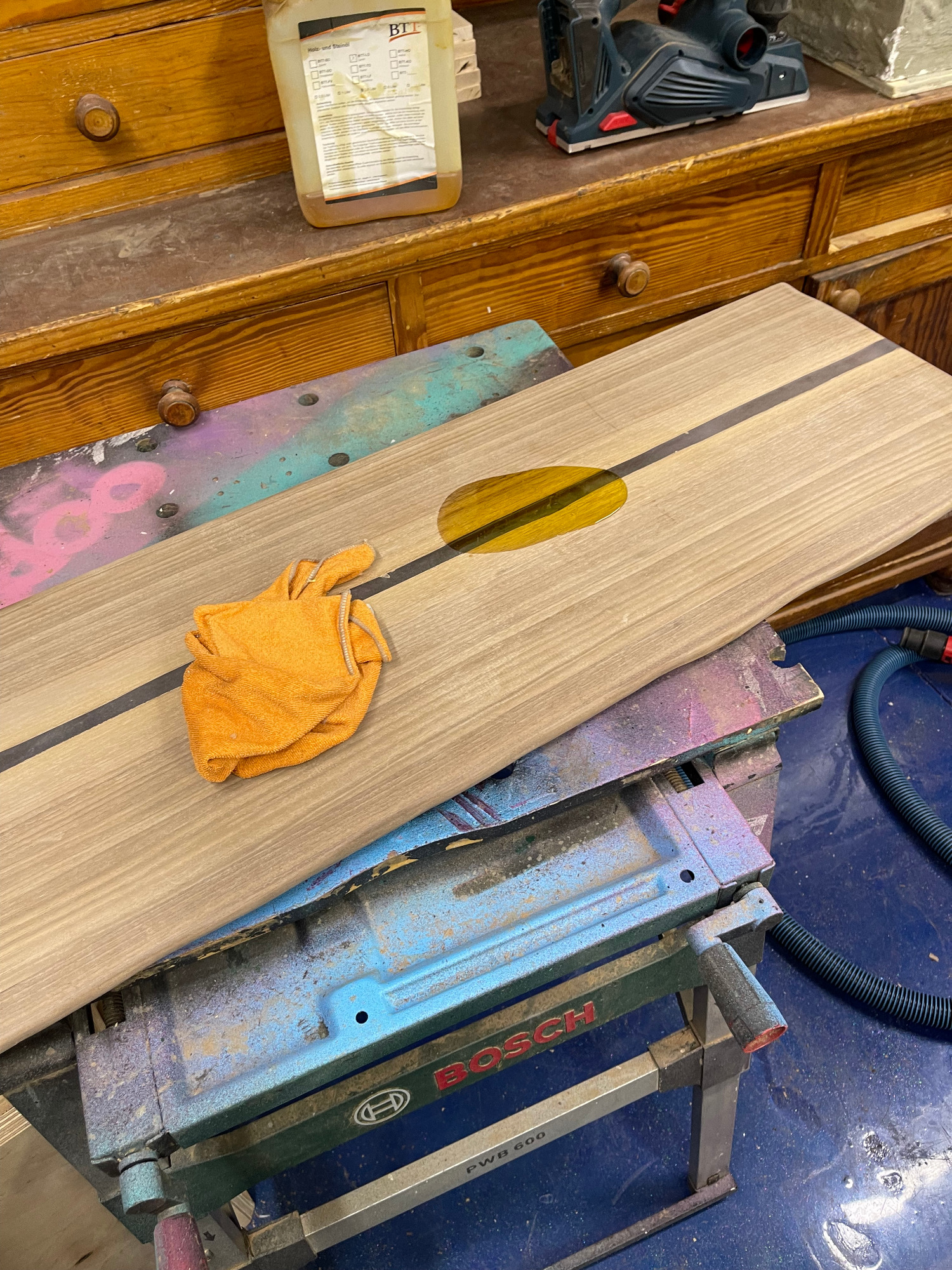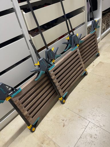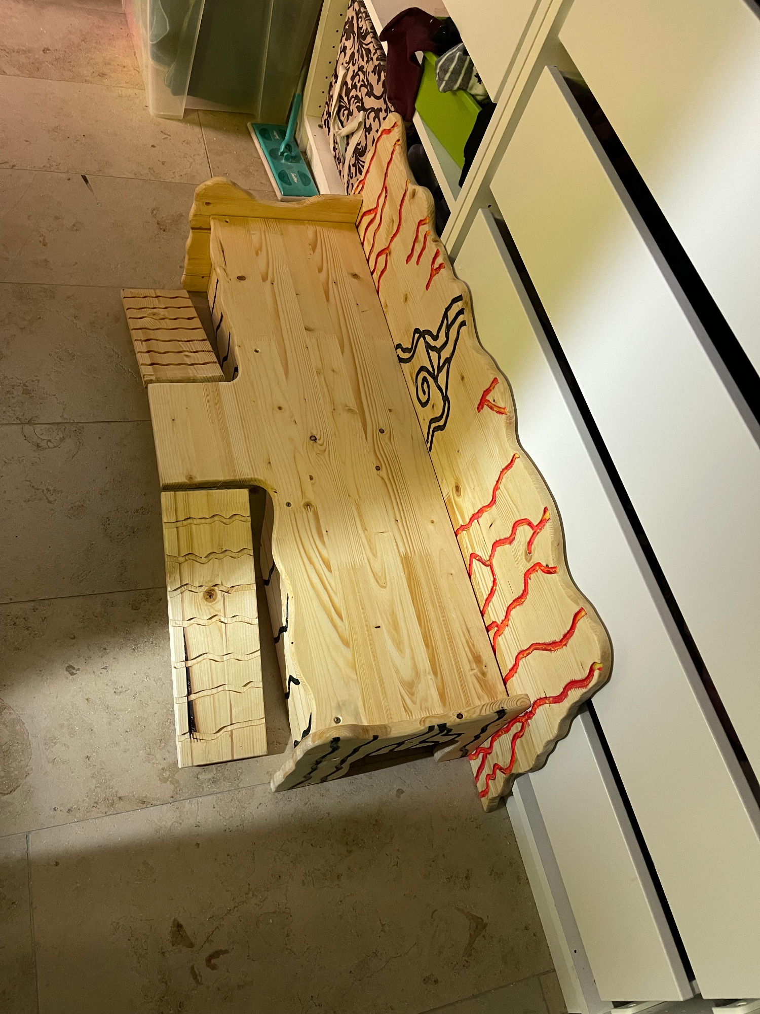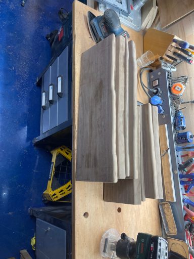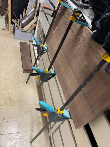 Aufgrund des Verschnitts bleibt viel Holz übrig. Daraus sind bereits verschiedene Projekte entstanden, die ich für mich, Freunde, Bekannte und Verwandte gemacht habe. Dazu gehören unter anderen Schuhregale, Hocker, Holzwandbilder, Tische und Wandregale. Alles wurde aus Massivholz gefertigt. Ich habe das große Glück, in der Nähe einen Edelholz-Großhändler zu haben, was mir ermöglicht, mein Hobby voll auszuleben.