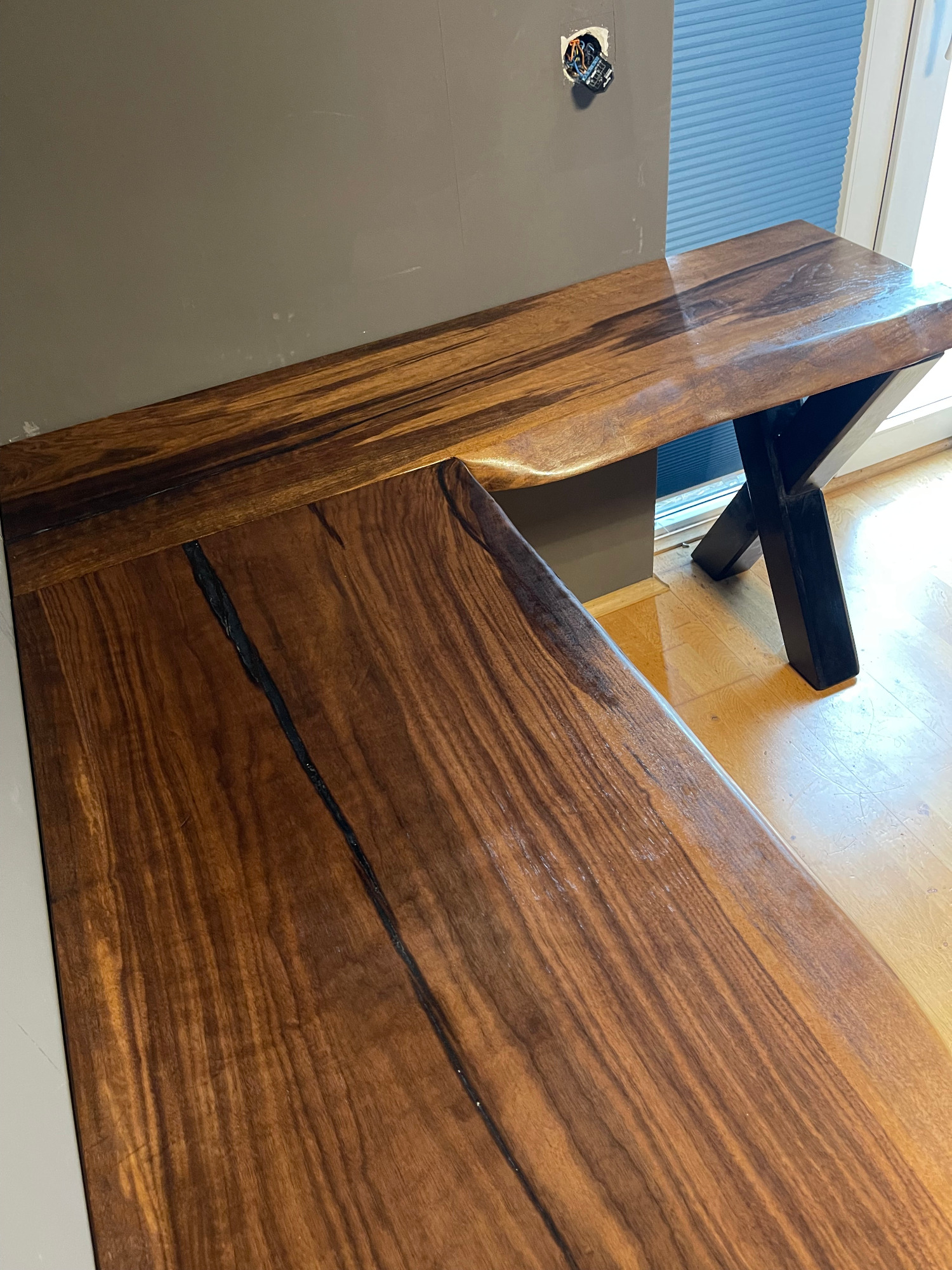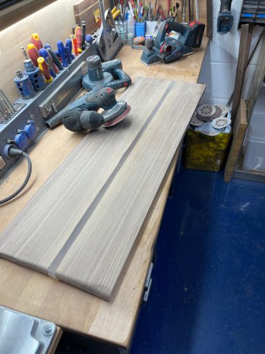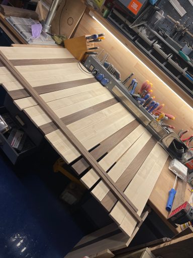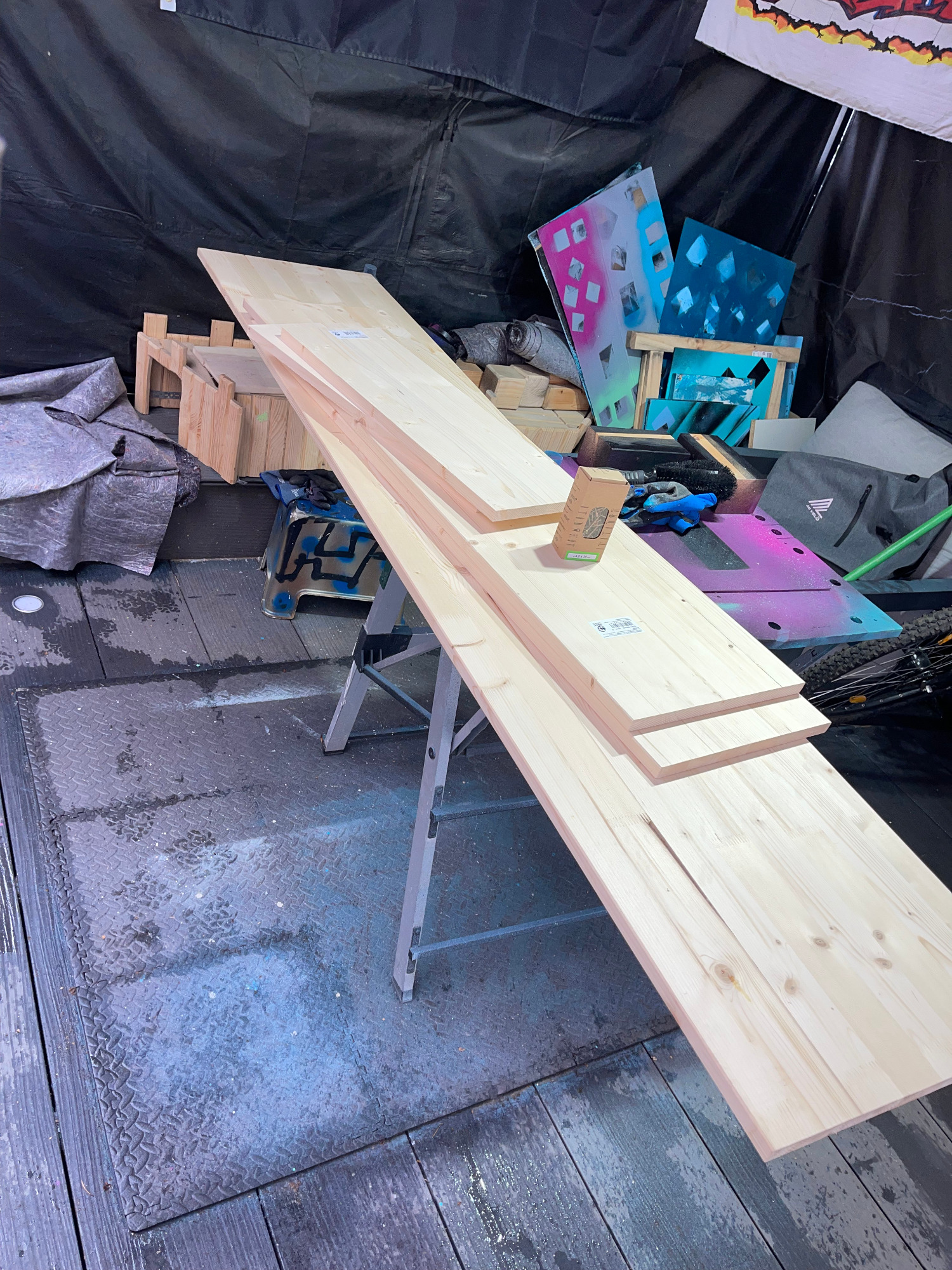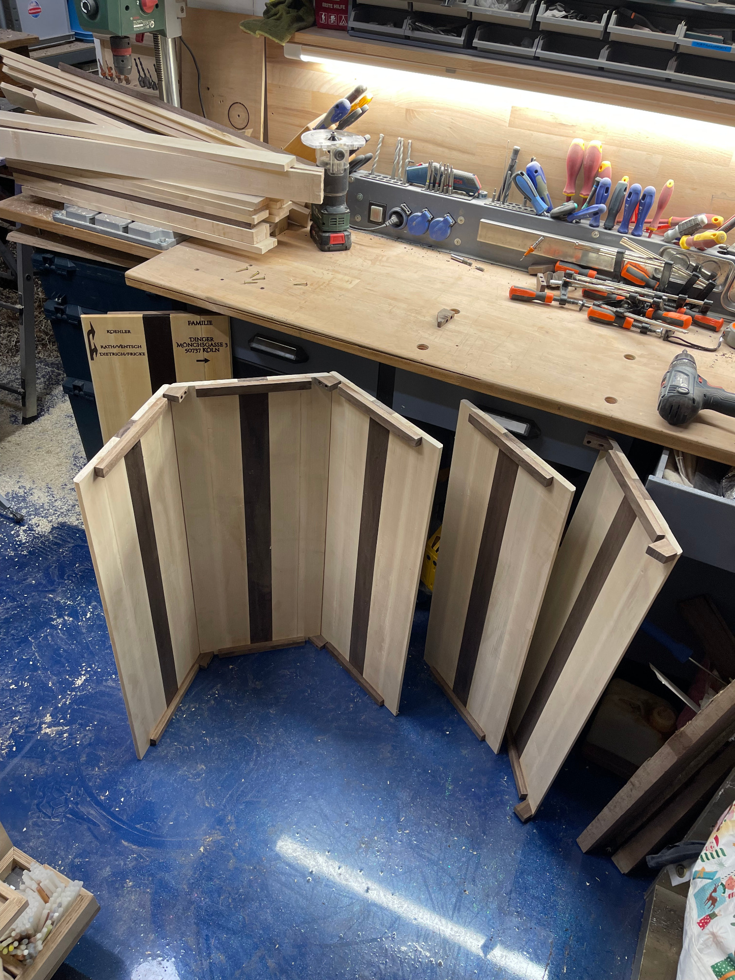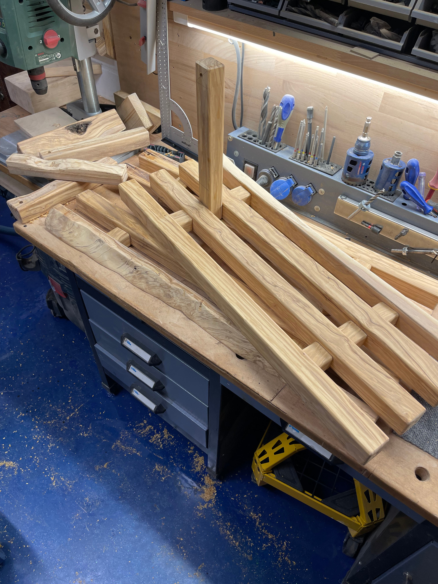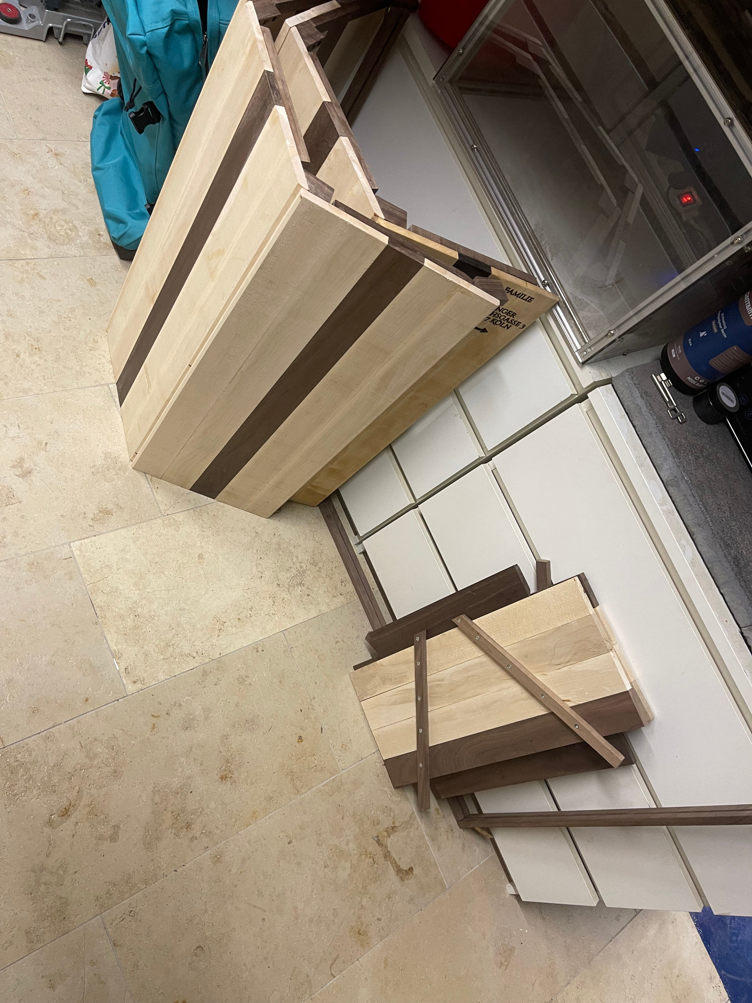 Aufgrund des Verschnitts bleibt viel Holz übrig. Daraus sind bereits verschiedene Projekte entstanden, die ich für mich, Freunde, Bekannte und Verwandte gemacht habe. Dazu gehören unter anderen Schuhregale, Hocker, Holzwandbilder, Tische und Wandregale. Alles wurde aus Massivholz gefertigt. Ich habe das große Glück, in der Nähe einen Edelholz-Großhändler zu haben, was mir ermöglicht, mein Hobby voll auszuleben.