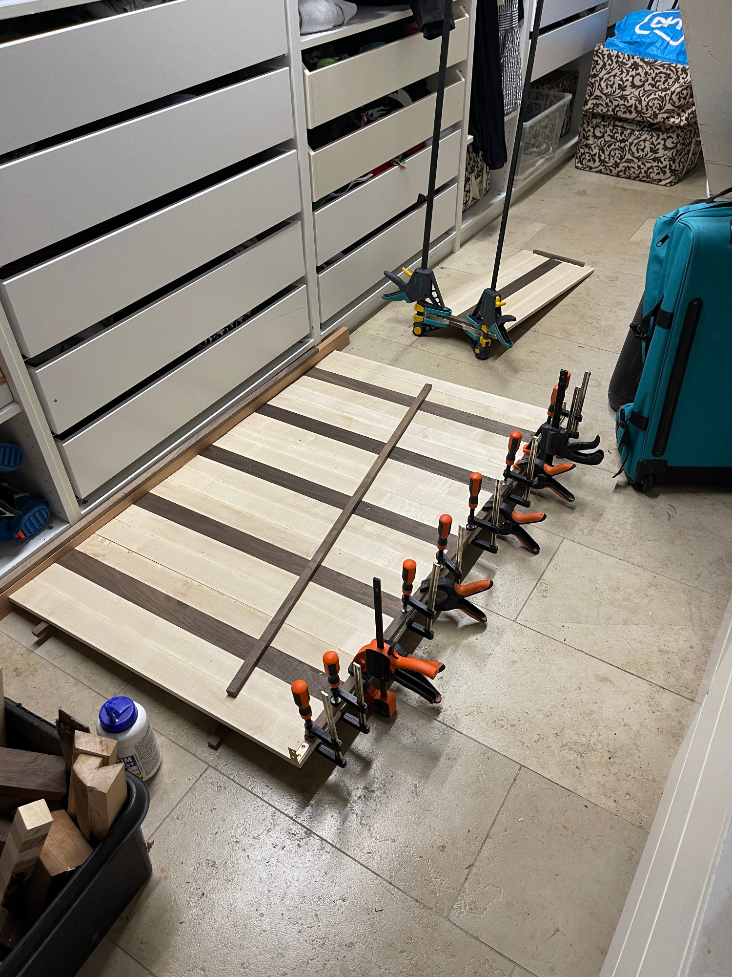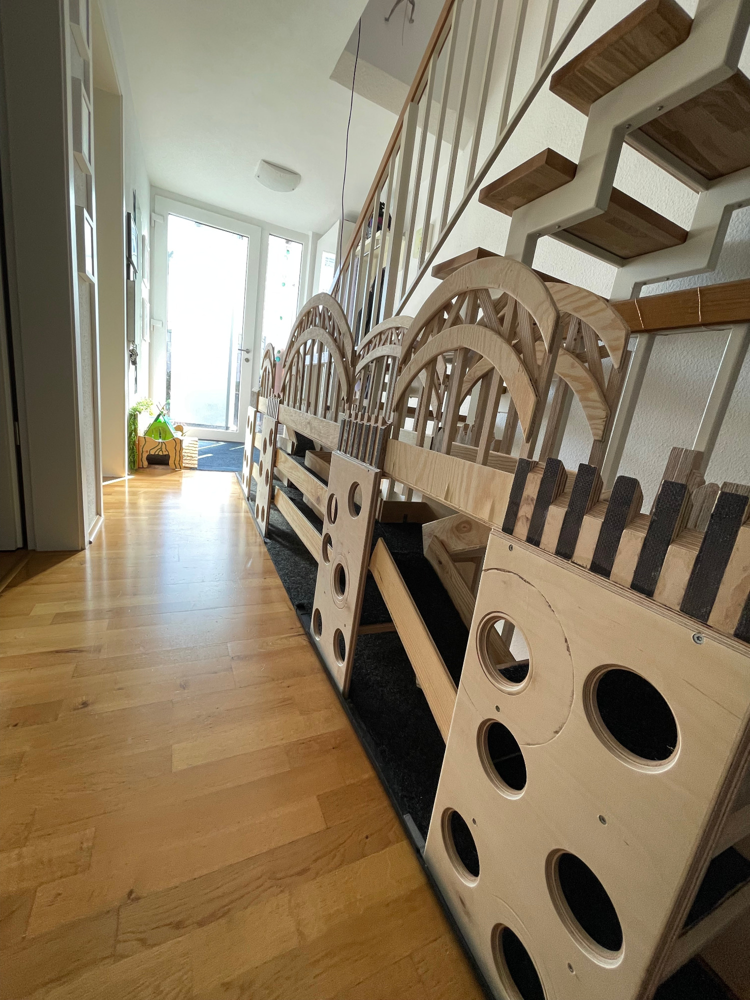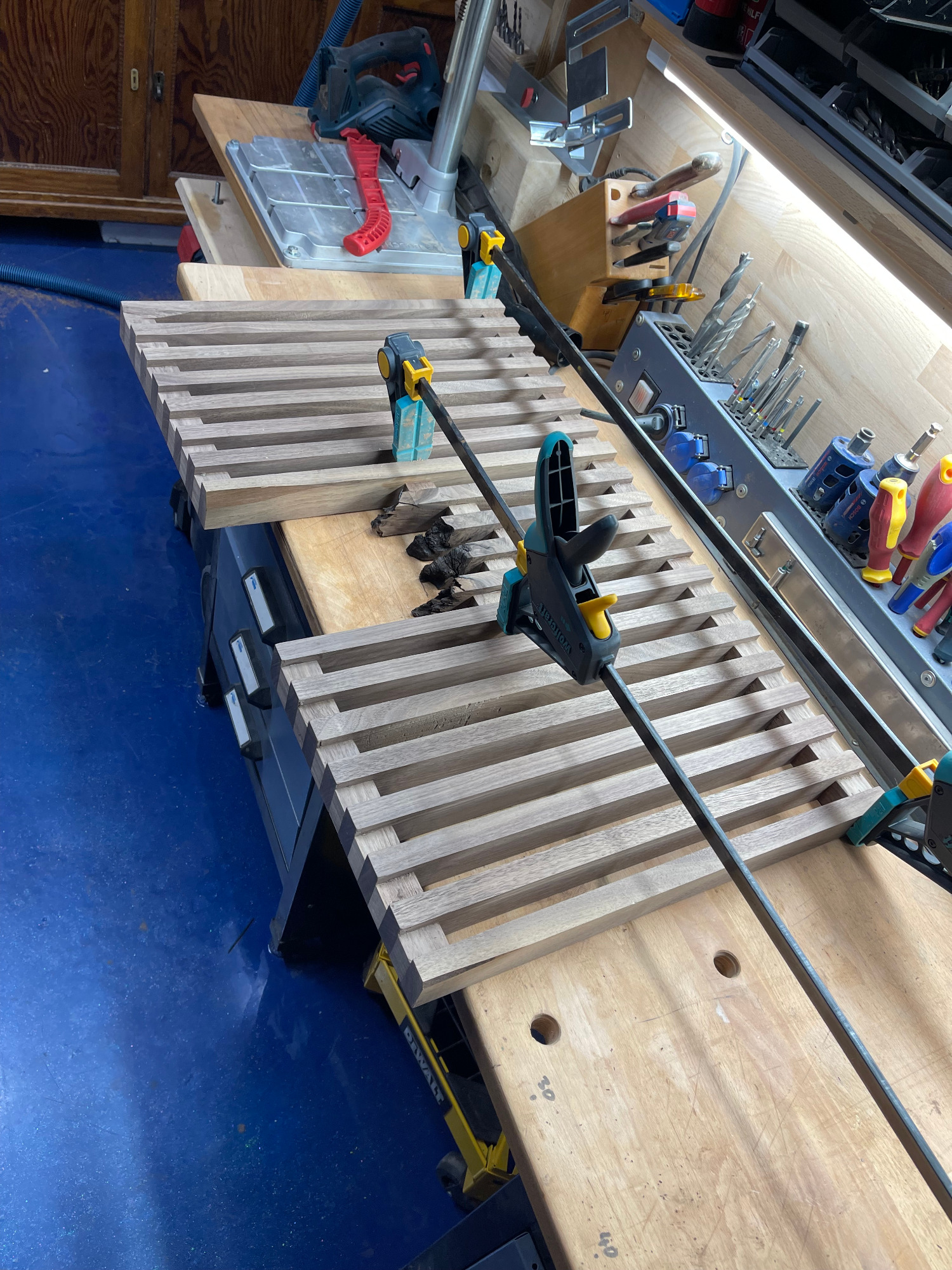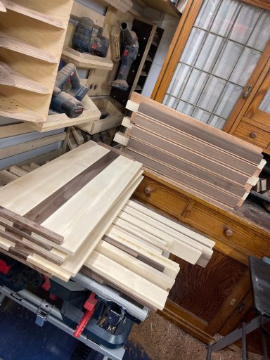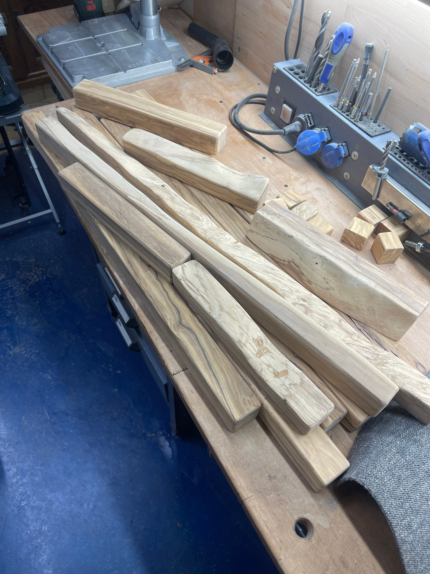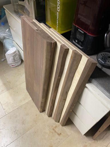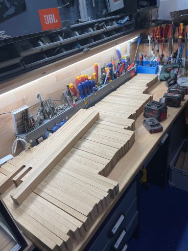 Aufgrund des Verschnitts bleibt viel Holz übrig. Daraus sind bereits verschiedene Projekte entstanden, die ich für mich, Freunde, Bekannte und Verwandte gemacht habe. Dazu gehören unter anderen Schuhregale, Hocker, Holzwandbilder, Tische und Wandregale. Alles wurde aus Massivholz gefertigt. Ich habe das große Glück, in der Nähe einen Edelholz-Großhändler zu haben, was mir ermöglicht, mein Hobby voll auszuleben.