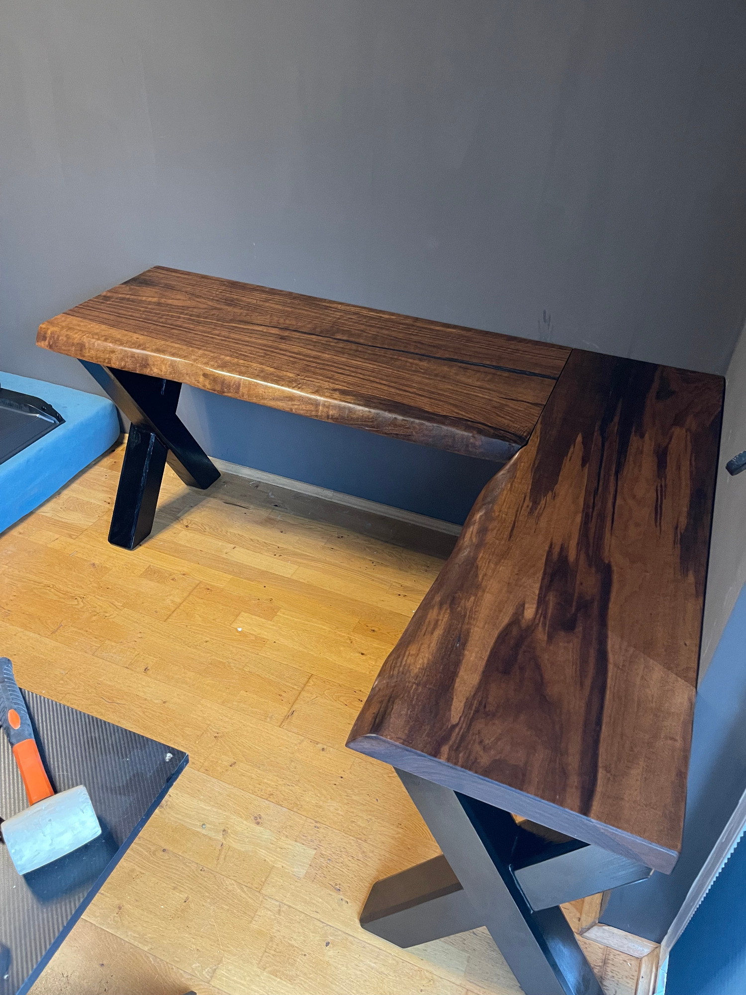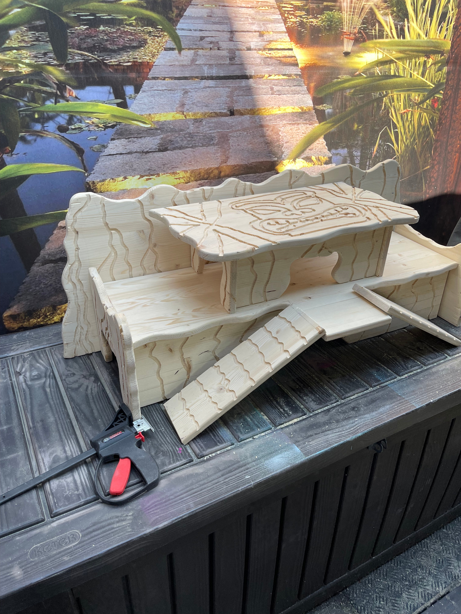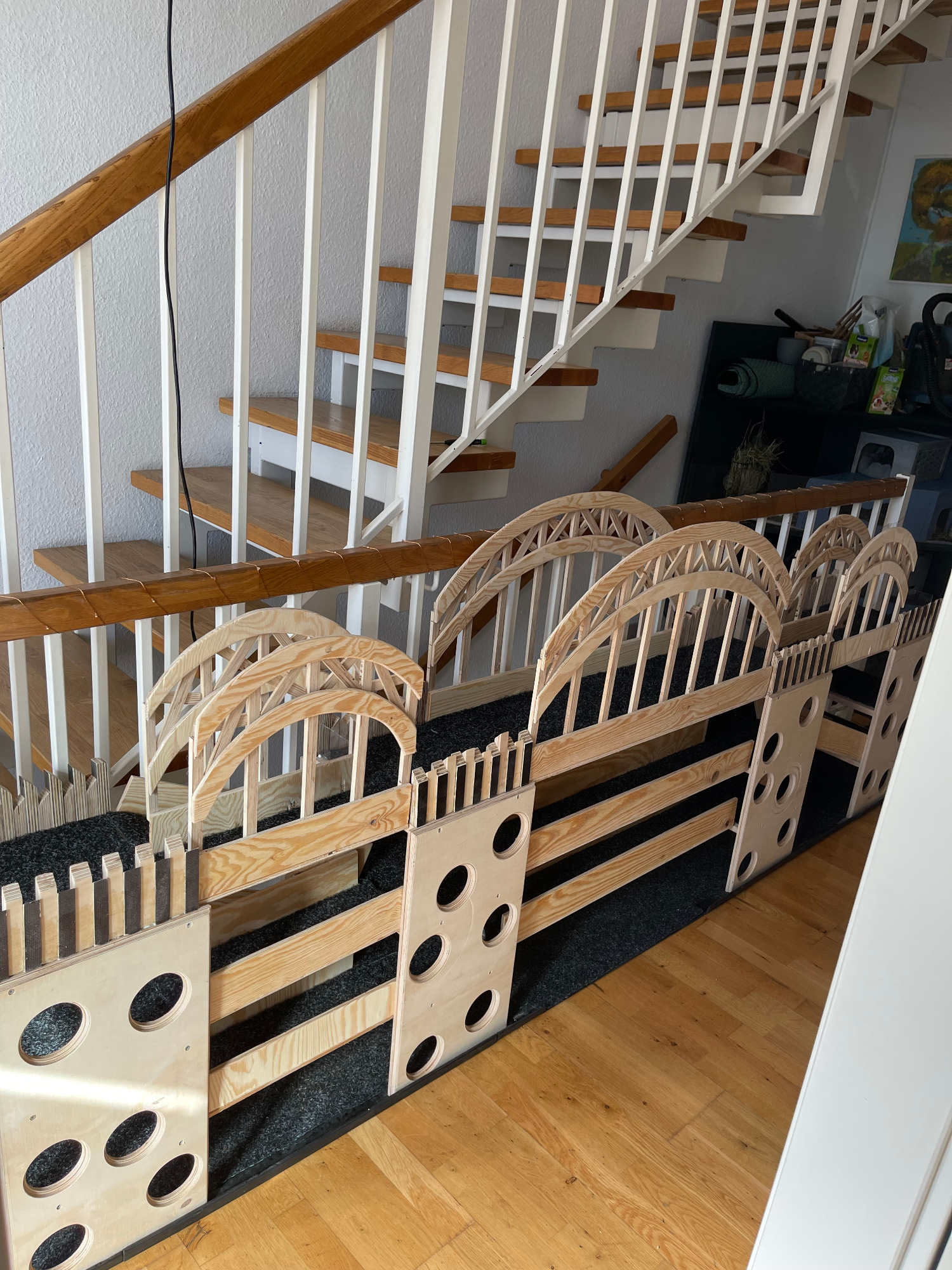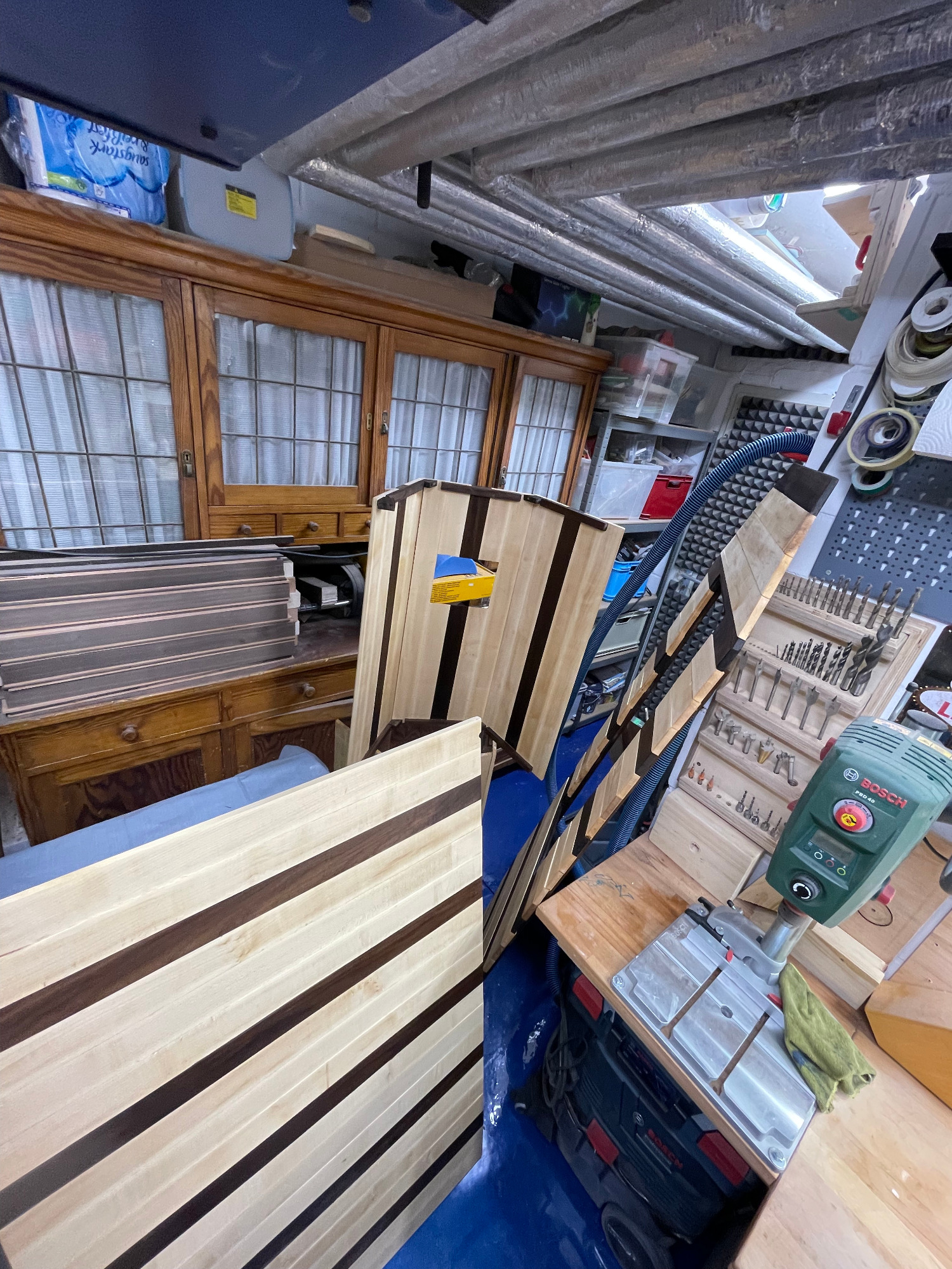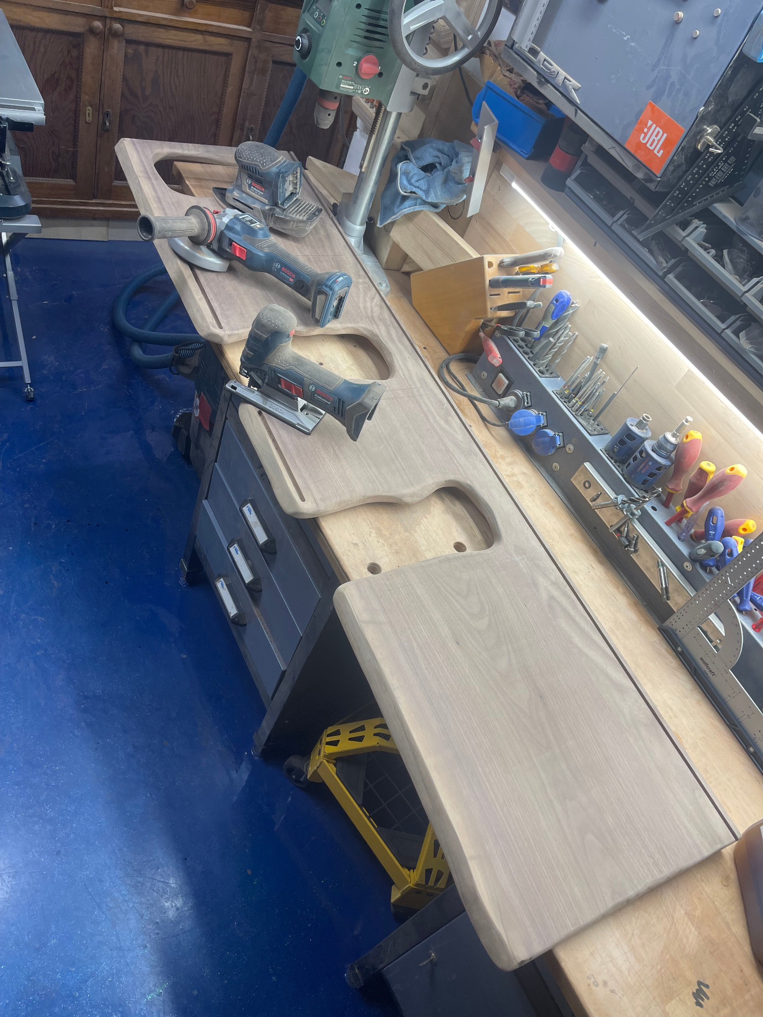 Aufgrund des Verschnitts bleibt viel Holz übrig. Daraus sind bereits verschiedene Projekte entstanden, die ich für mich, Freunde, Bekannte und Verwandte gemacht habe. Dazu gehören unter anderen Schuhregale, Hocker, Holzwandbilder, Tische und Wandregale. Alles wurde aus Massivholz gefertigt. Ich habe das große Glück, in der Nähe einen Edelholz-Großhändler zu haben, was mir ermöglicht, mein Hobby voll auszuleben.
