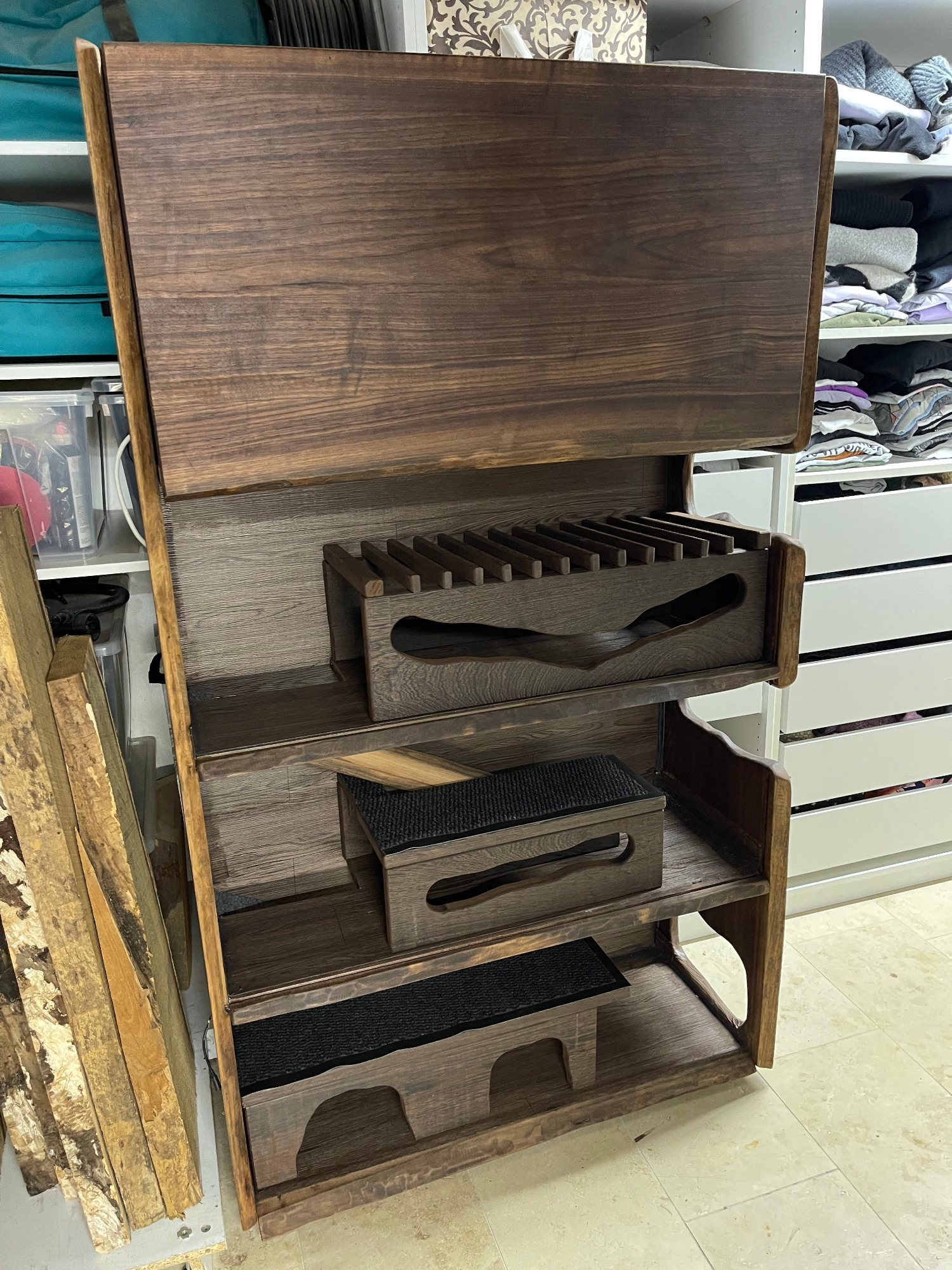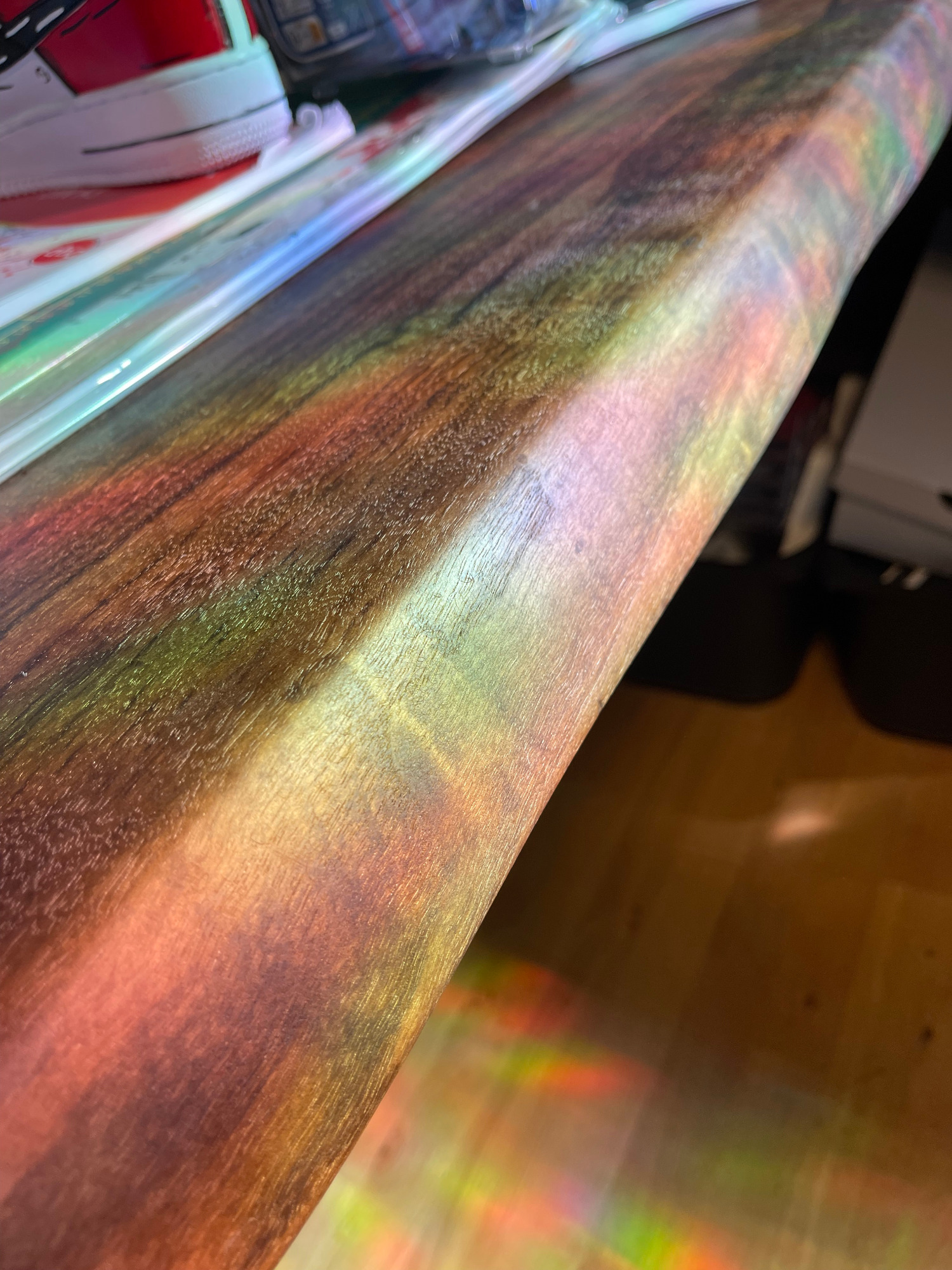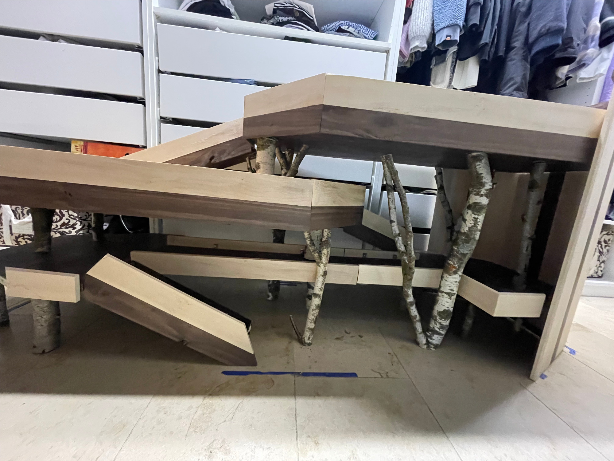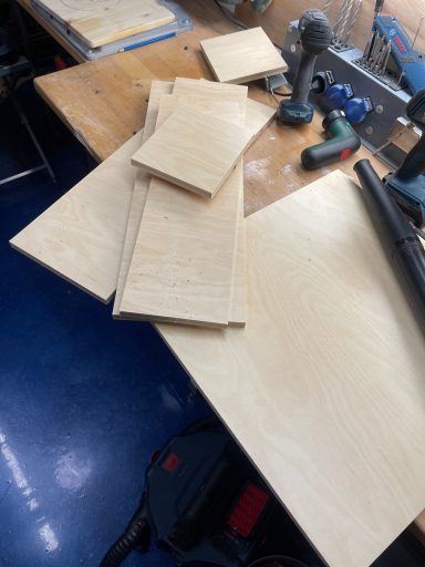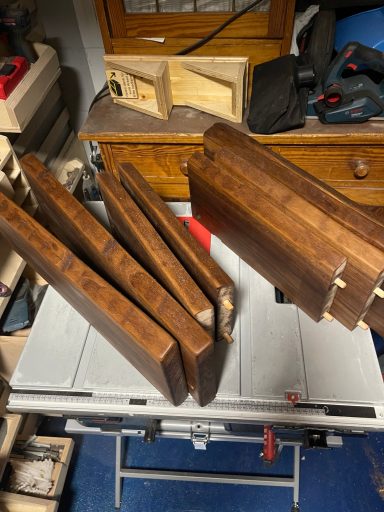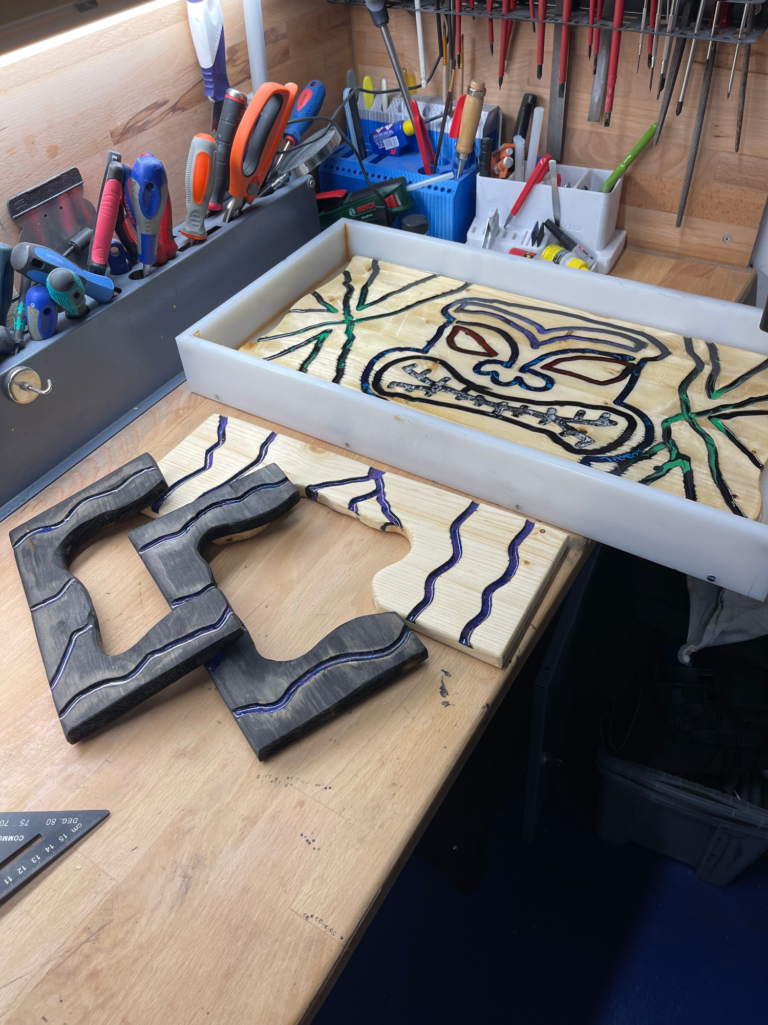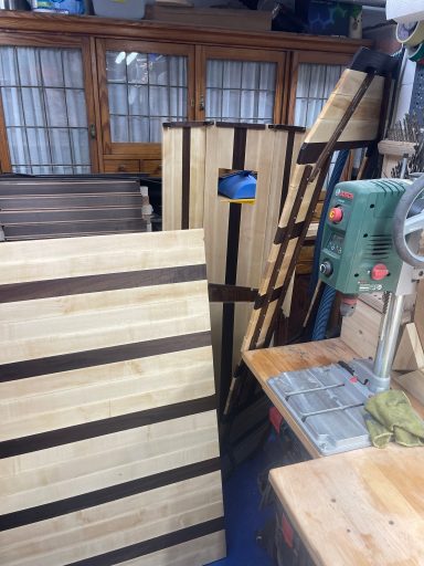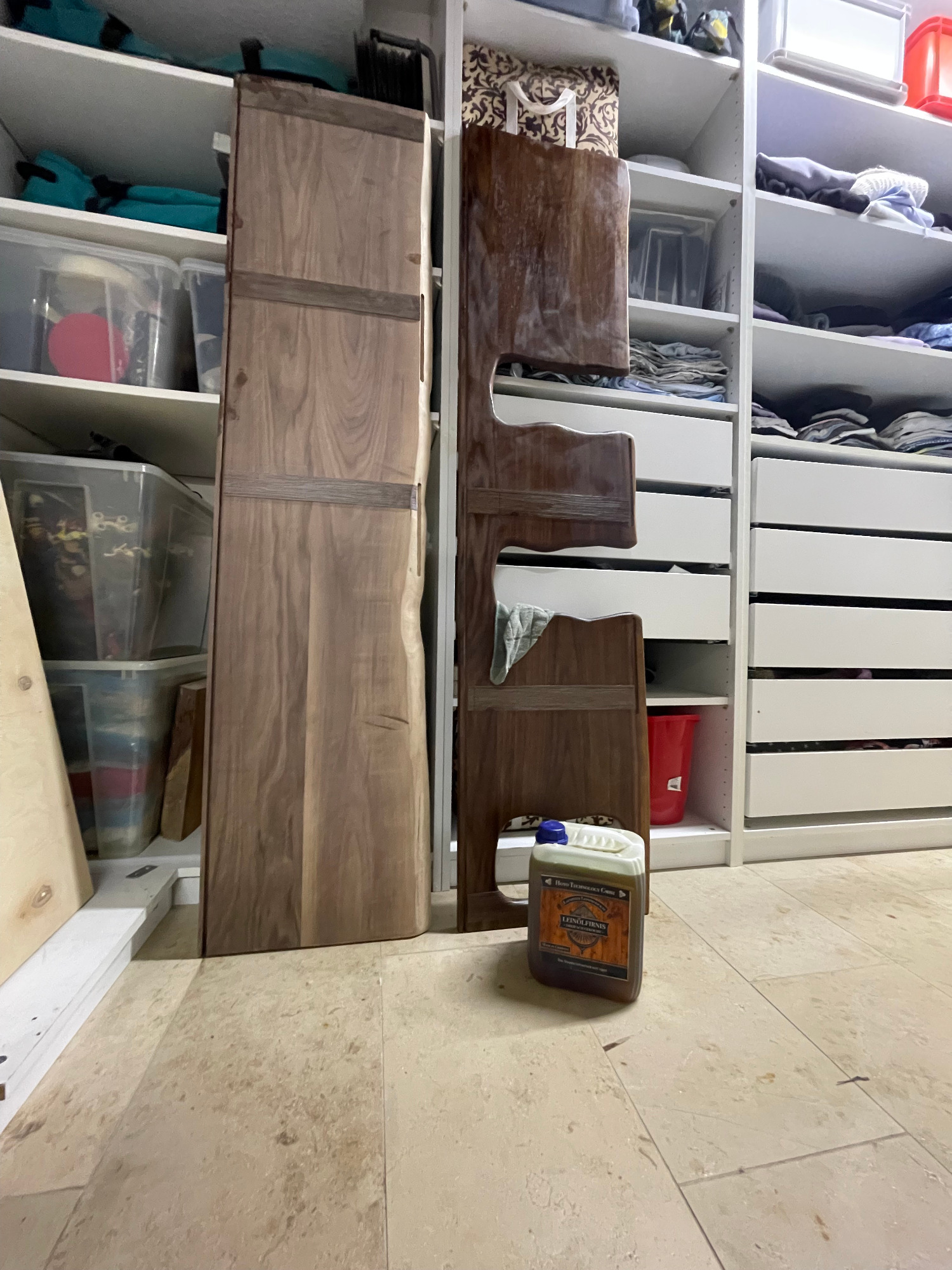 Aufgrund des Verschnitts bleibt viel Holz übrig. Daraus sind bereits verschiedene Projekte entstanden, die ich für mich, Freunde, Bekannte und Verwandte gemacht habe. Dazu gehören unter anderen Schuhregale, Hocker, Holzwandbilder, Tische und Wandregale. Alles wurde aus Massivholz gefertigt. Ich habe das große Glück, in der Nähe einen Edelholz-Großhändler zu haben, was mir ermöglicht, mein Hobby voll auszuleben.