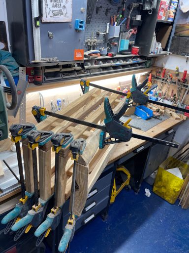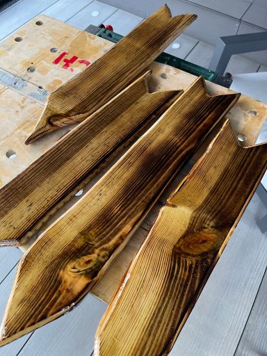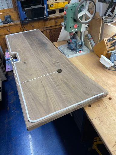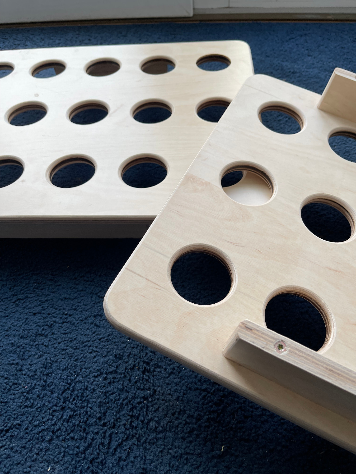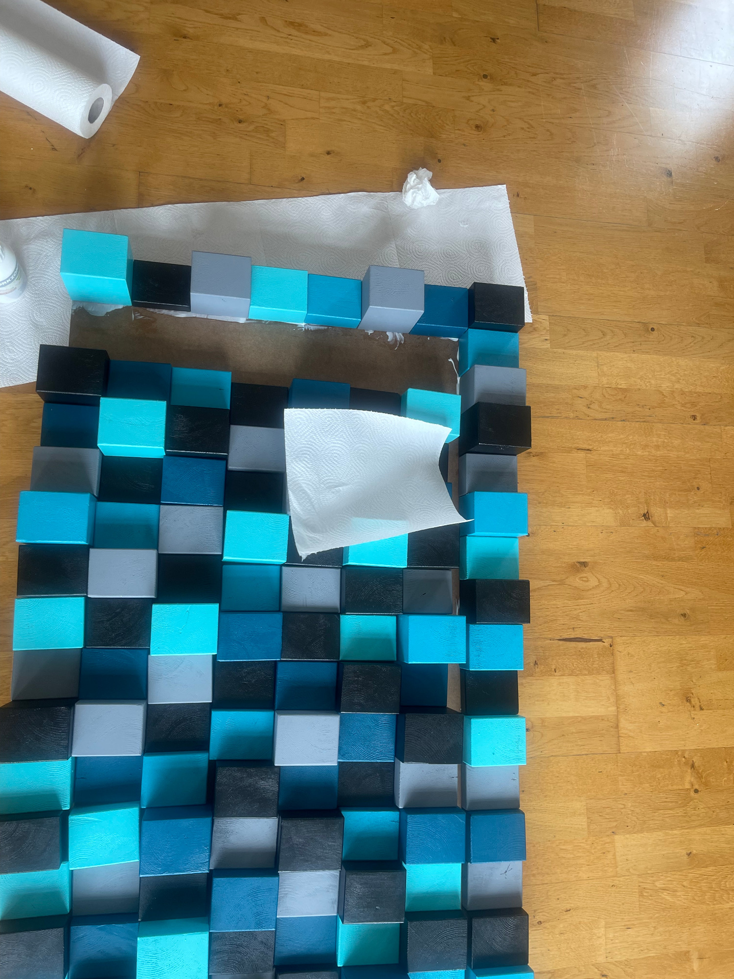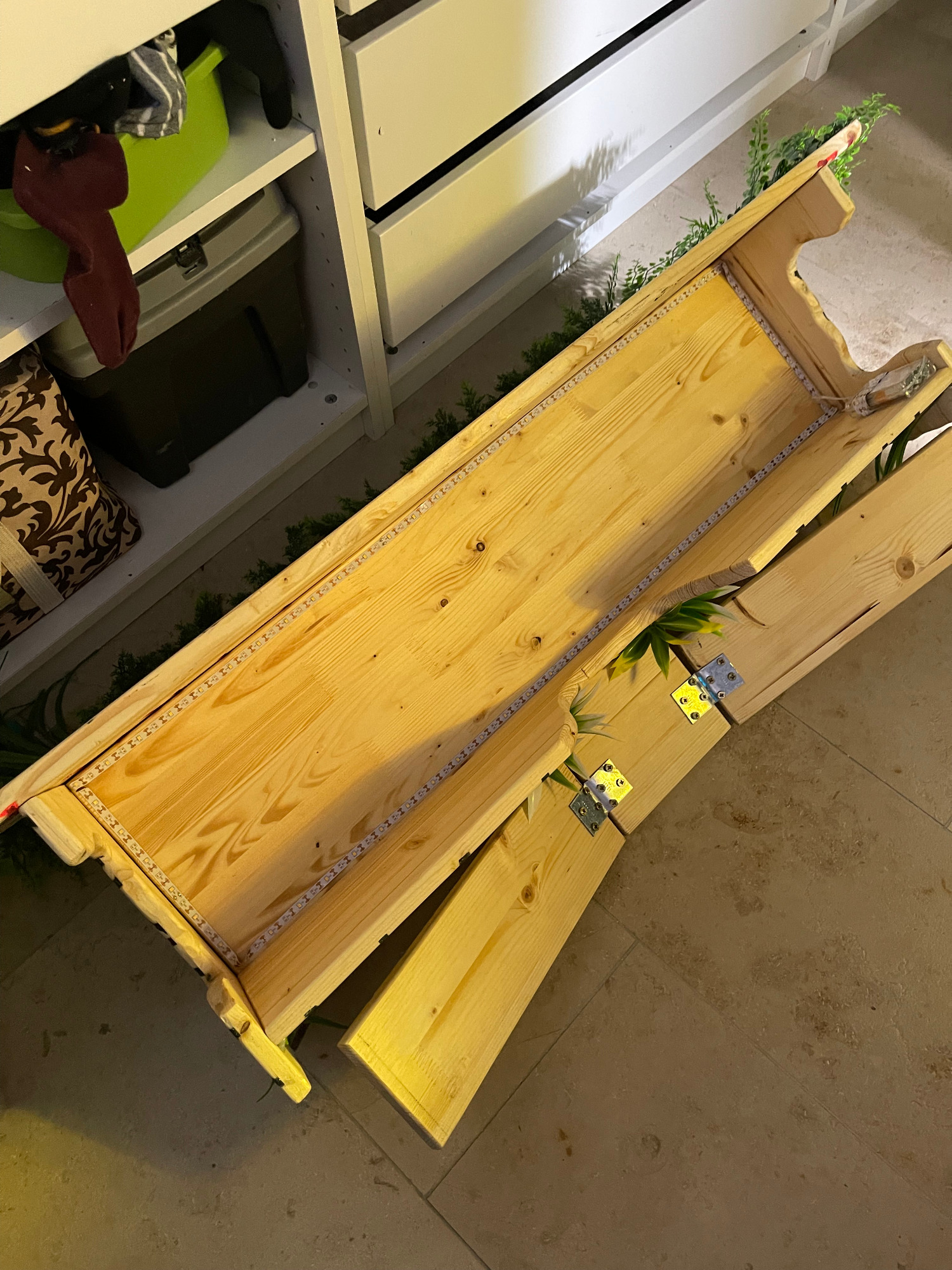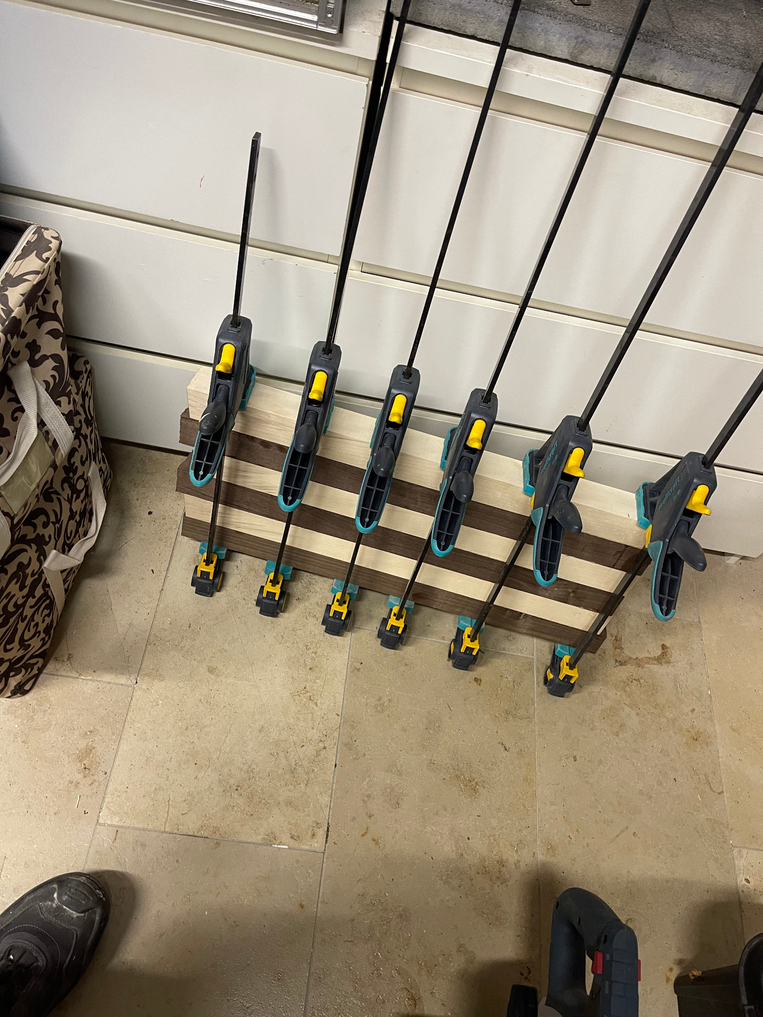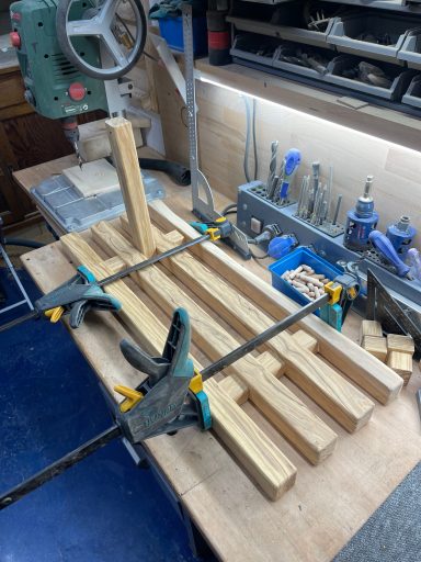 Aufgrund des Verschnitts bleibt viel Holz übrig. Daraus sind bereits verschiedene Projekte entstanden, die ich für mich, Freunde, Bekannte und Verwandte gemacht habe. Dazu gehören unter anderen Schuhregale, Hocker, Holzwandbilder, Tische und Wandregale. Alles wurde aus Massivholz gefertigt. Ich habe das große Glück, in der Nähe einen Edelholz-Großhändler zu haben, was mir ermöglicht, mein Hobby voll auszuleben.