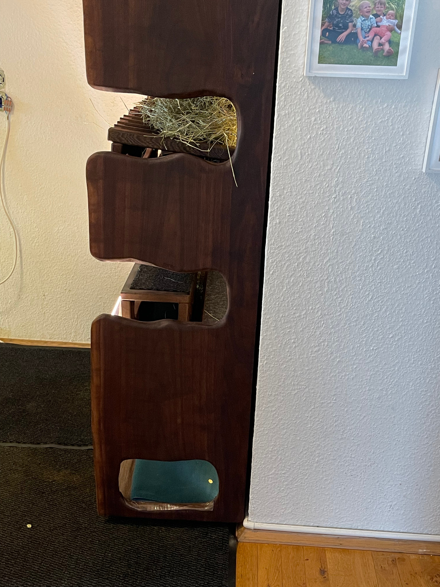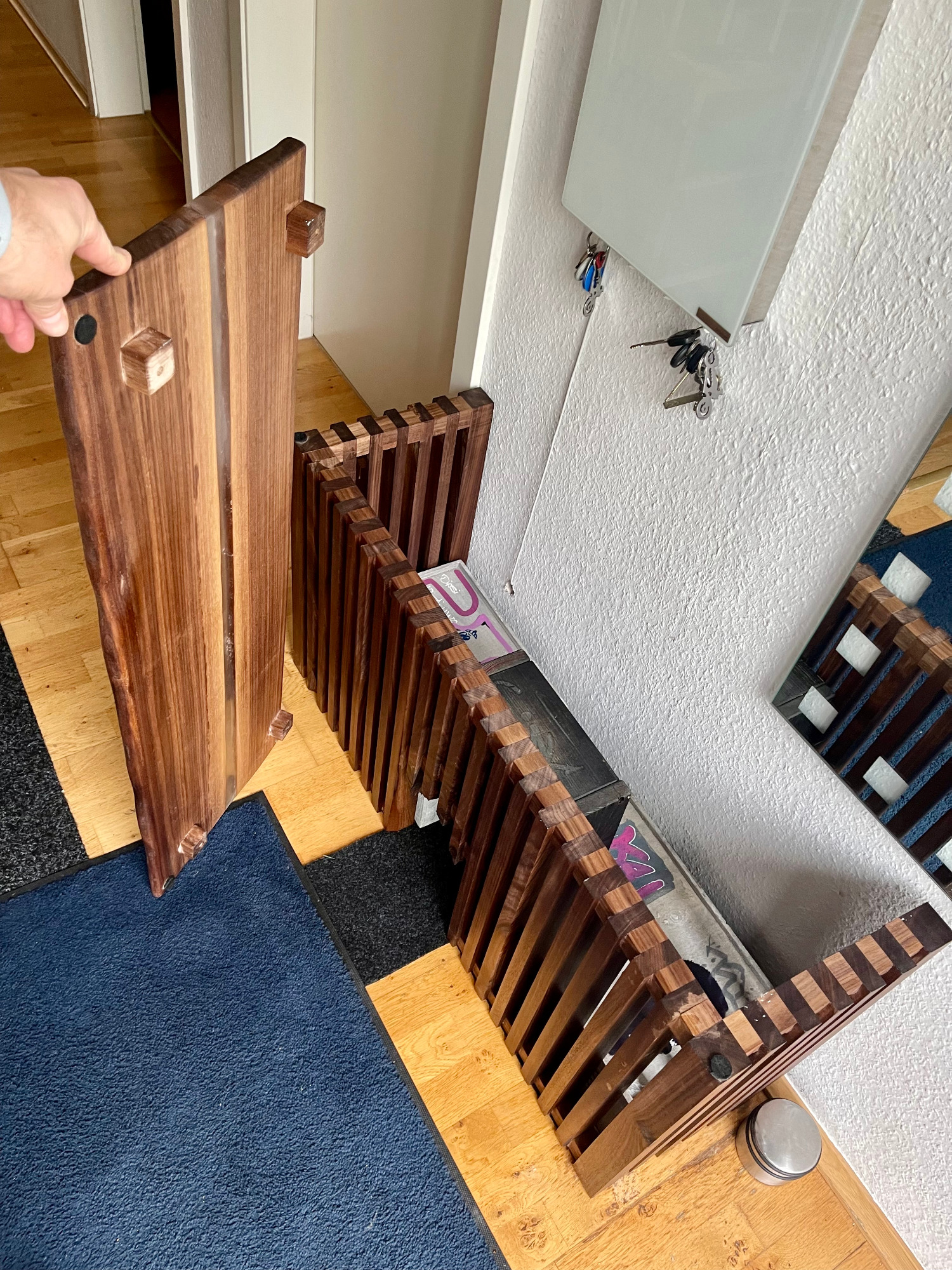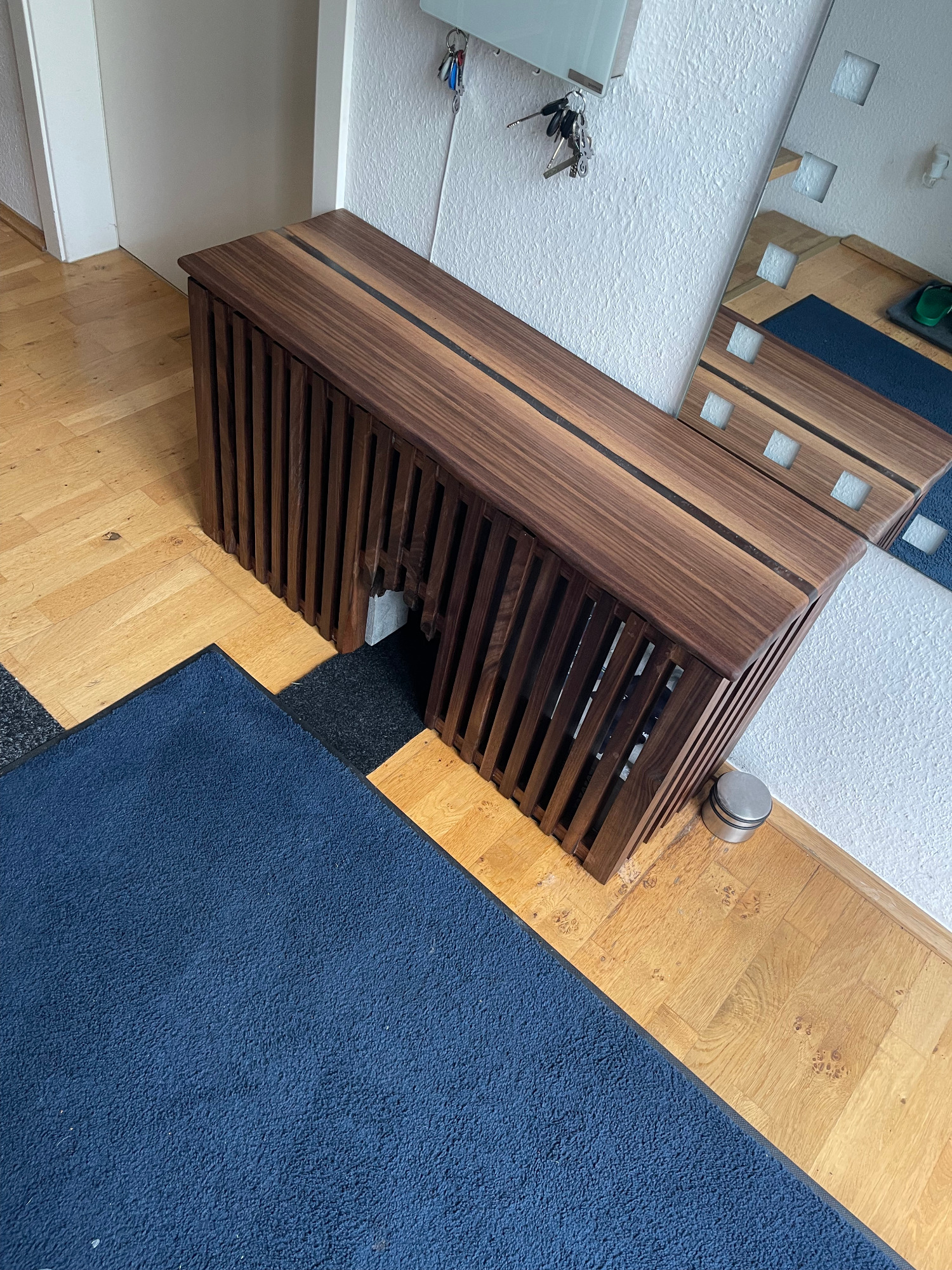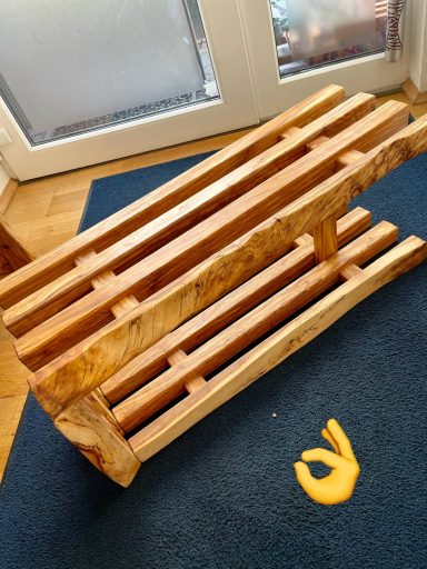 Dabei geht es mir nicht nur um den Zweck, sondern auch um die Freude am Schaffen. Ich könnte einfach ein günstiges Schuhregal kaufen, das seinen Zweck erfüllt, aber für mich ist das Gestalten und das Endergebnis viel schöner. Zum Beispiel habe ich für eine Kollegin ein Schuhregal aus Massiv-Olive gefertigt. Wer Holz mag, kann sich in der Galerie einen Eindruck davon verschaffen. Wie bei einem hochwertigen Messer oder einem Auto investiere ich in Material und Verarbeitung, um ein Produkt zu schaffen, das durch seine Optik begeistert.