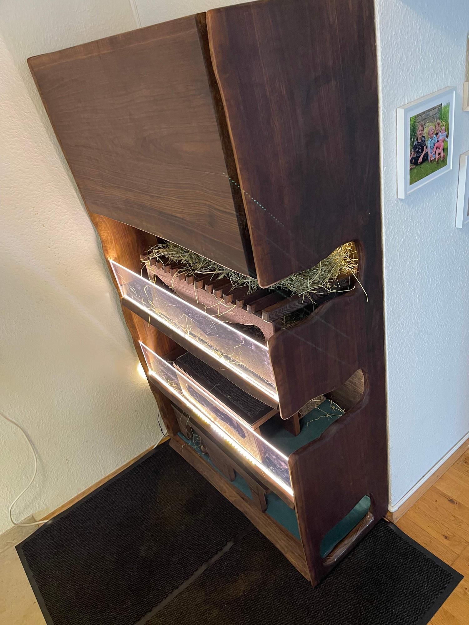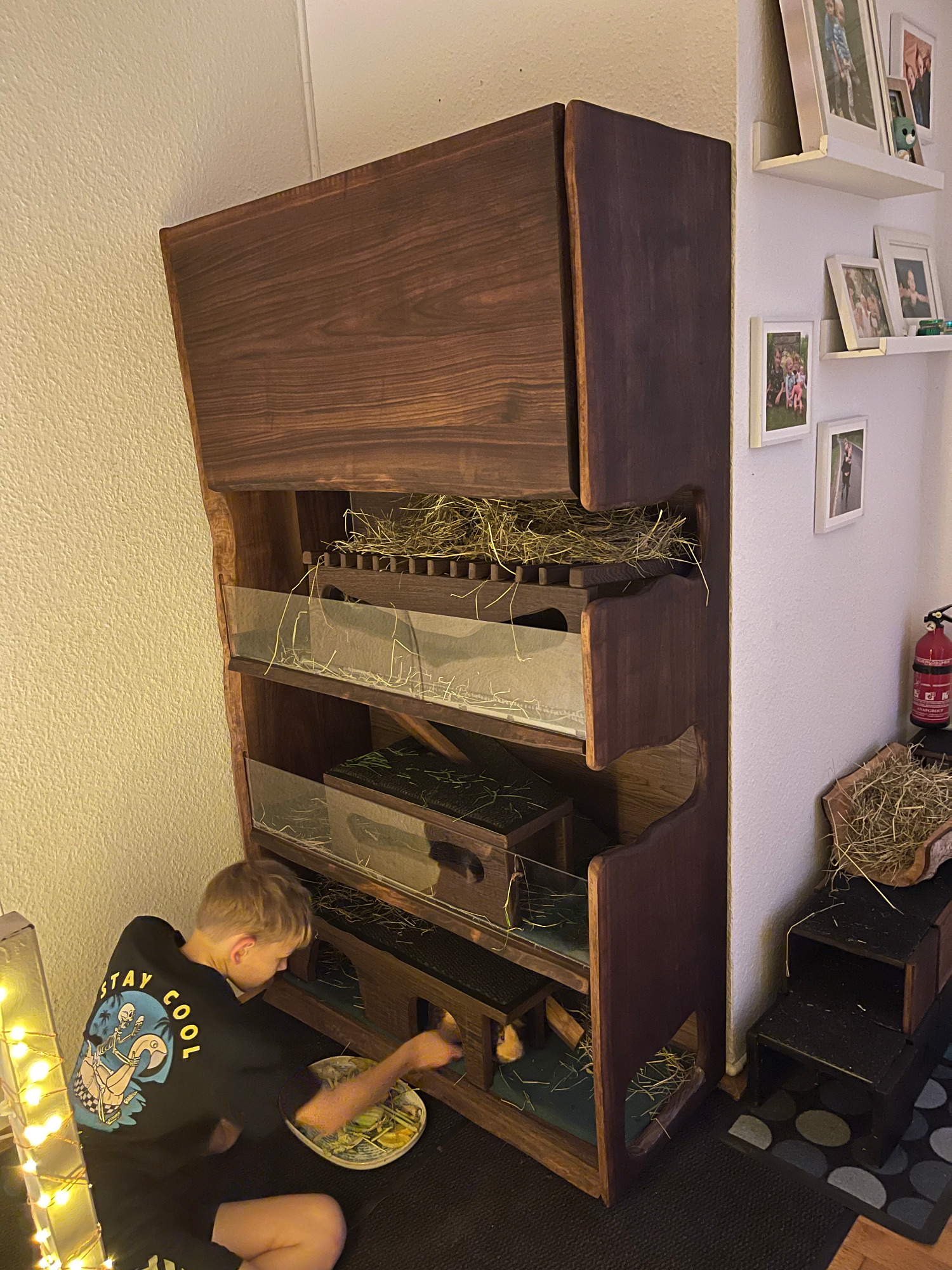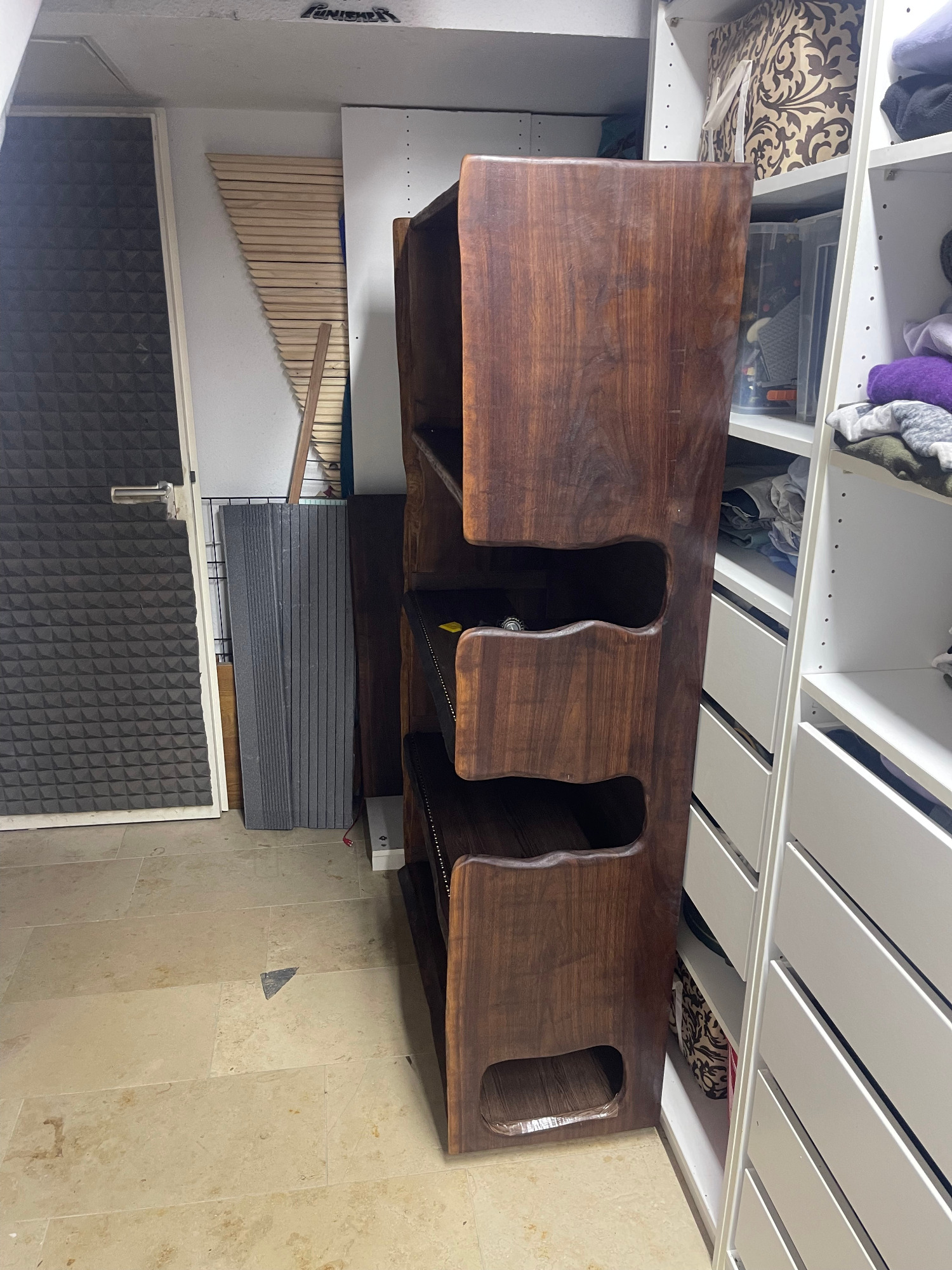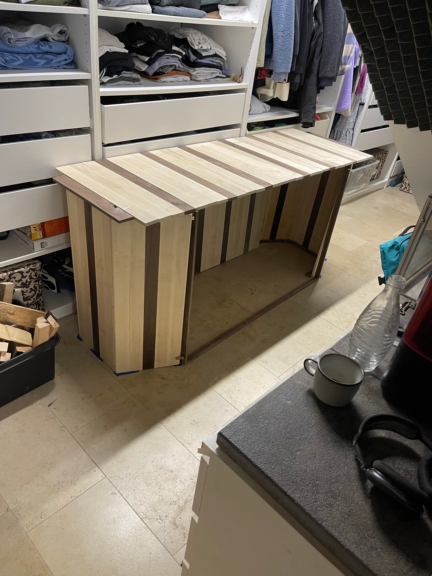 Dabei geht es mir nicht nur um den Zweck, sondern auch um die Freude am Schaffen. Ich könnte einfach ein günstiges Schuhregal kaufen, das seinen Zweck erfüllt, aber für mich ist das Gestalten und das Endergebnis viel schöner. Zum Beispiel habe ich für eine Kollegin ein Schuhregal aus Massiv-Olive gefertigt. Wer Holz mag, kann sich in der Galerie einen Eindruck davon verschaffen. Wie bei einem hochwertigen Messer oder einem Auto investiere ich in Material und Verarbeitung, um ein Produkt zu schaffen, das durch seine Optik begeistert.