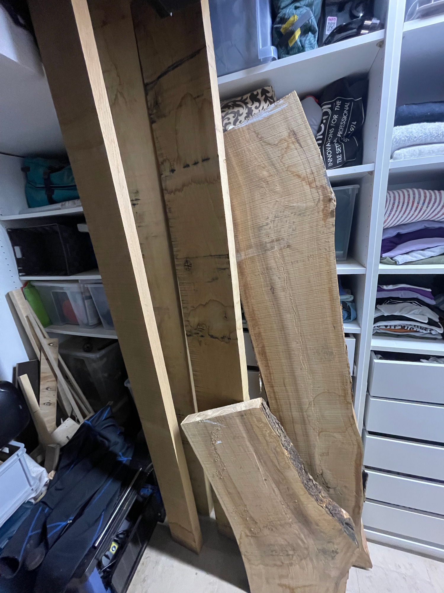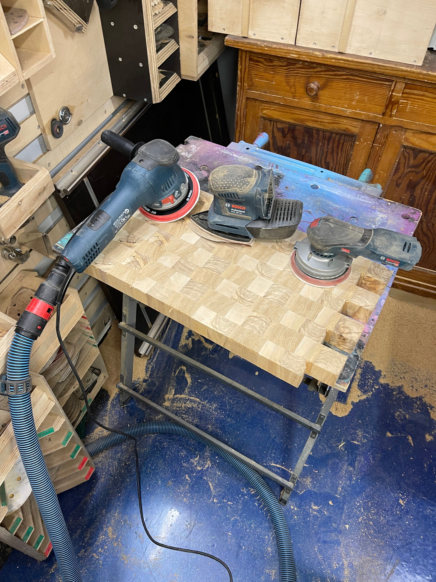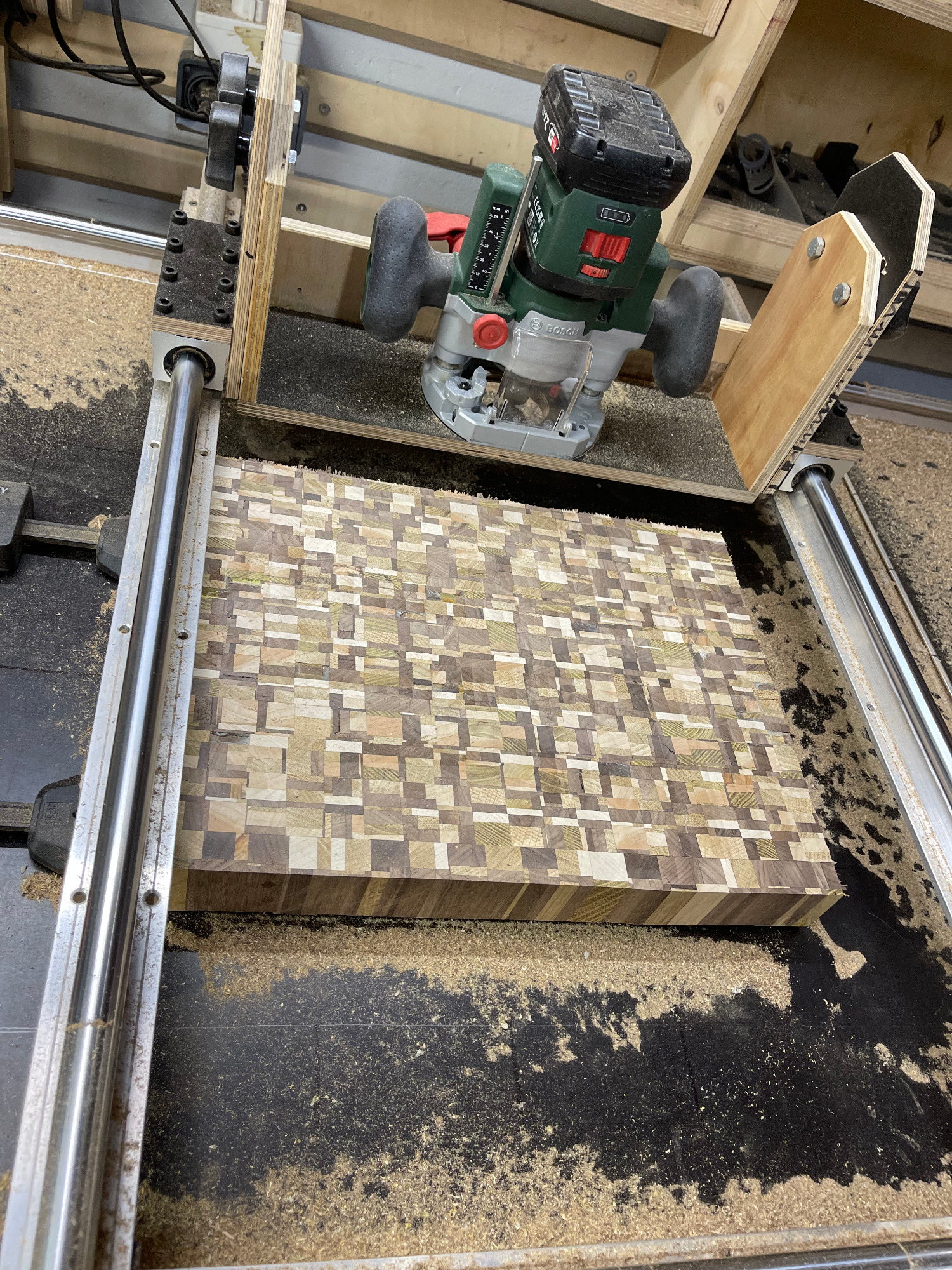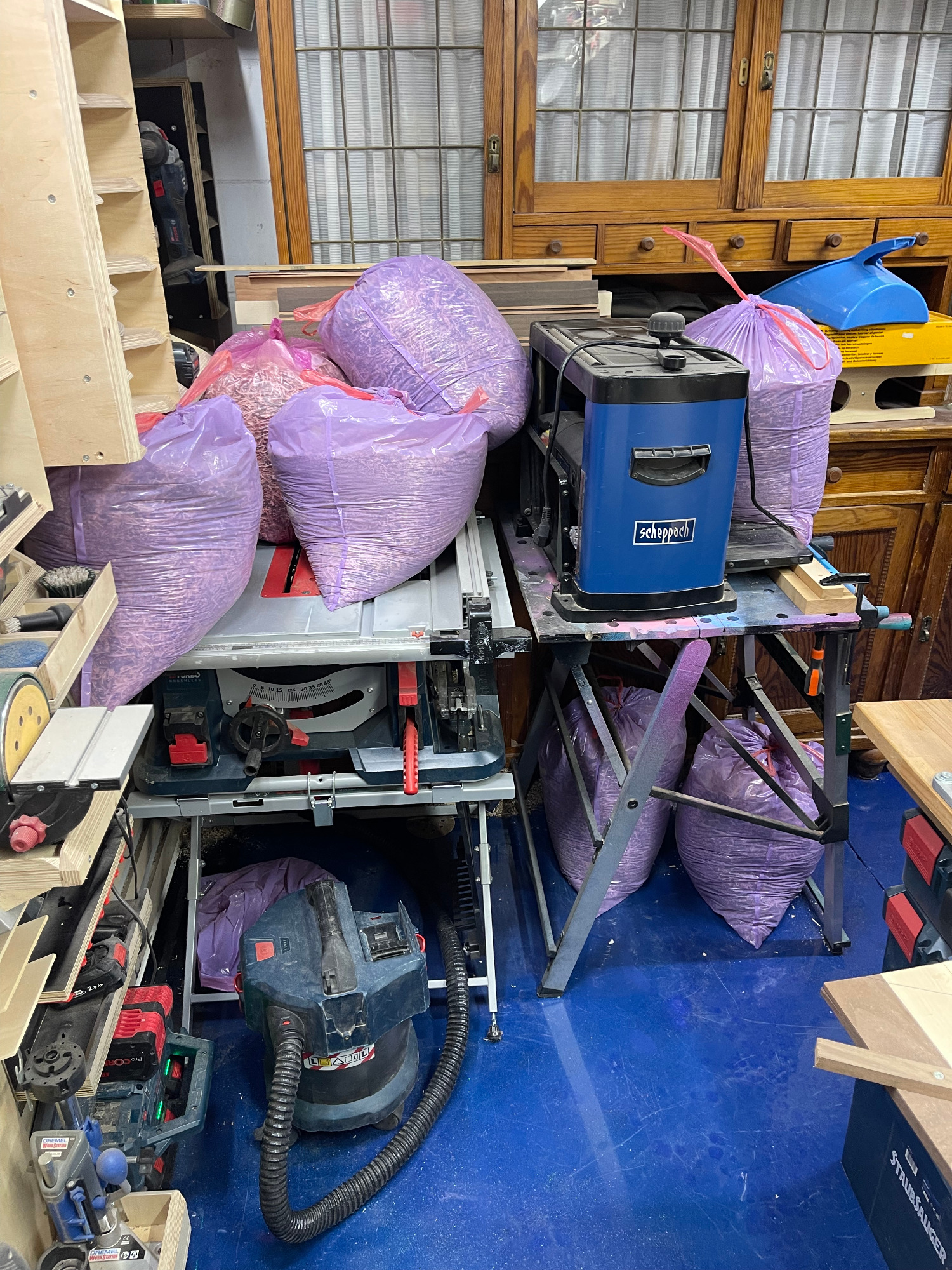 Bohle auftrennen, abrichten, hobeln, sägen, leimen, erneut sägen, erneut leimen, planfräsen, schleifen, kantenfräsen, bohren, schleifen, wässern, schleifen, ölen, schleifen, ölen... und dazwischen noch viele kleine Schritte. Viel Arbeit, aber es macht mir irgendwie Spaß! :-)