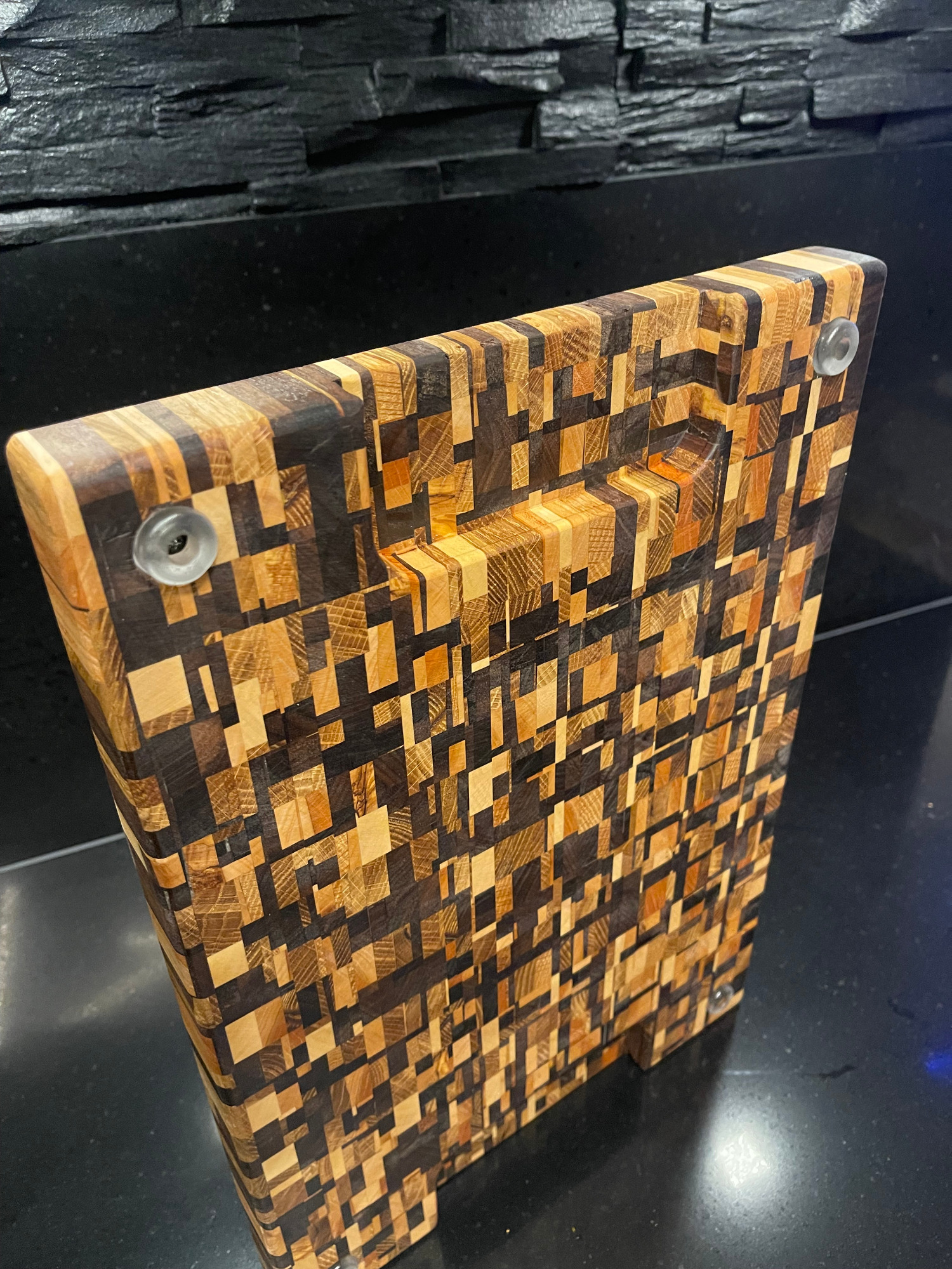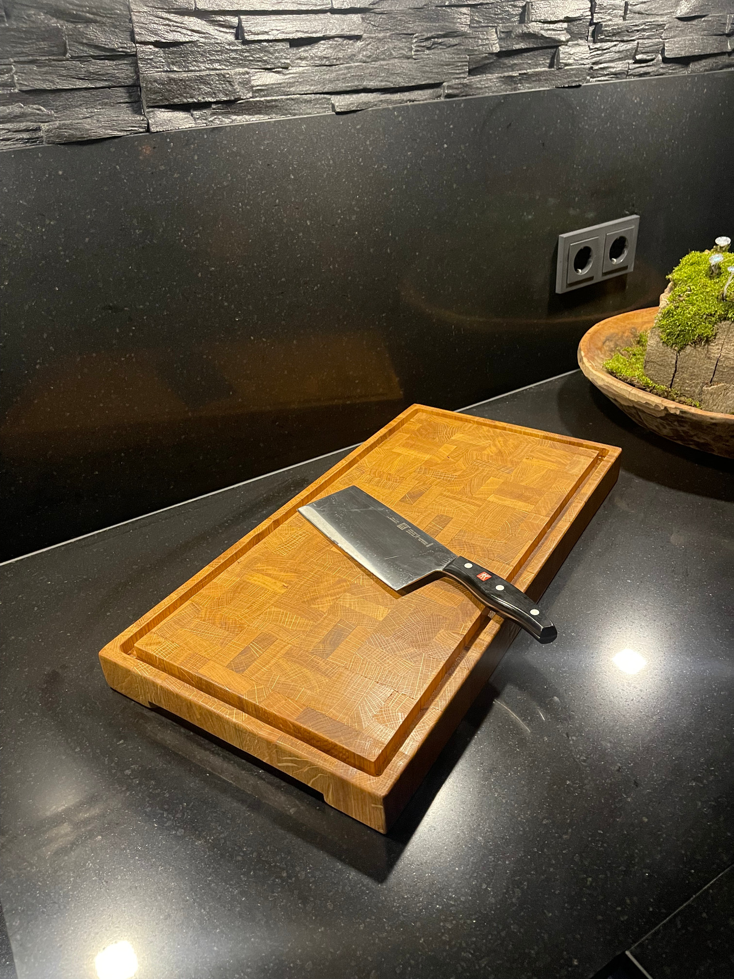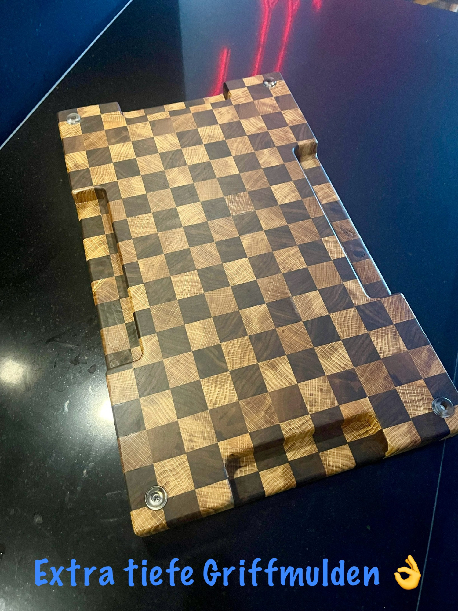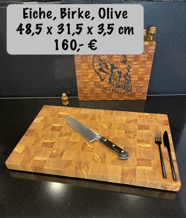 - Diese Art von Schneidbrettern ist sehr langlebig und hygienisch. Die Holzfasern stehen in aufrechter Position, was die Oberfläche härter macht und weniger Feuchtigkeit aufnimmt.