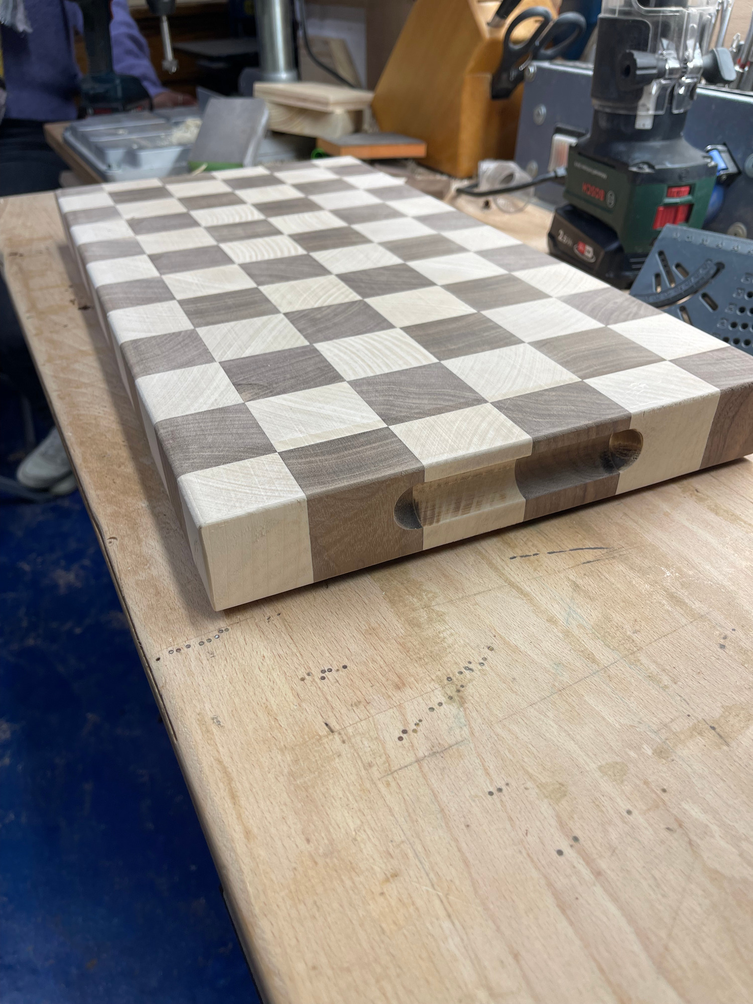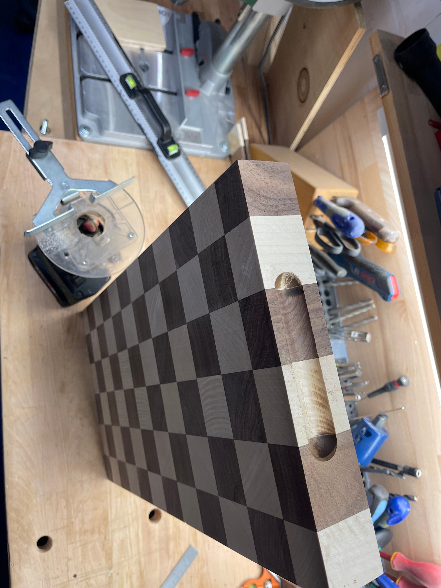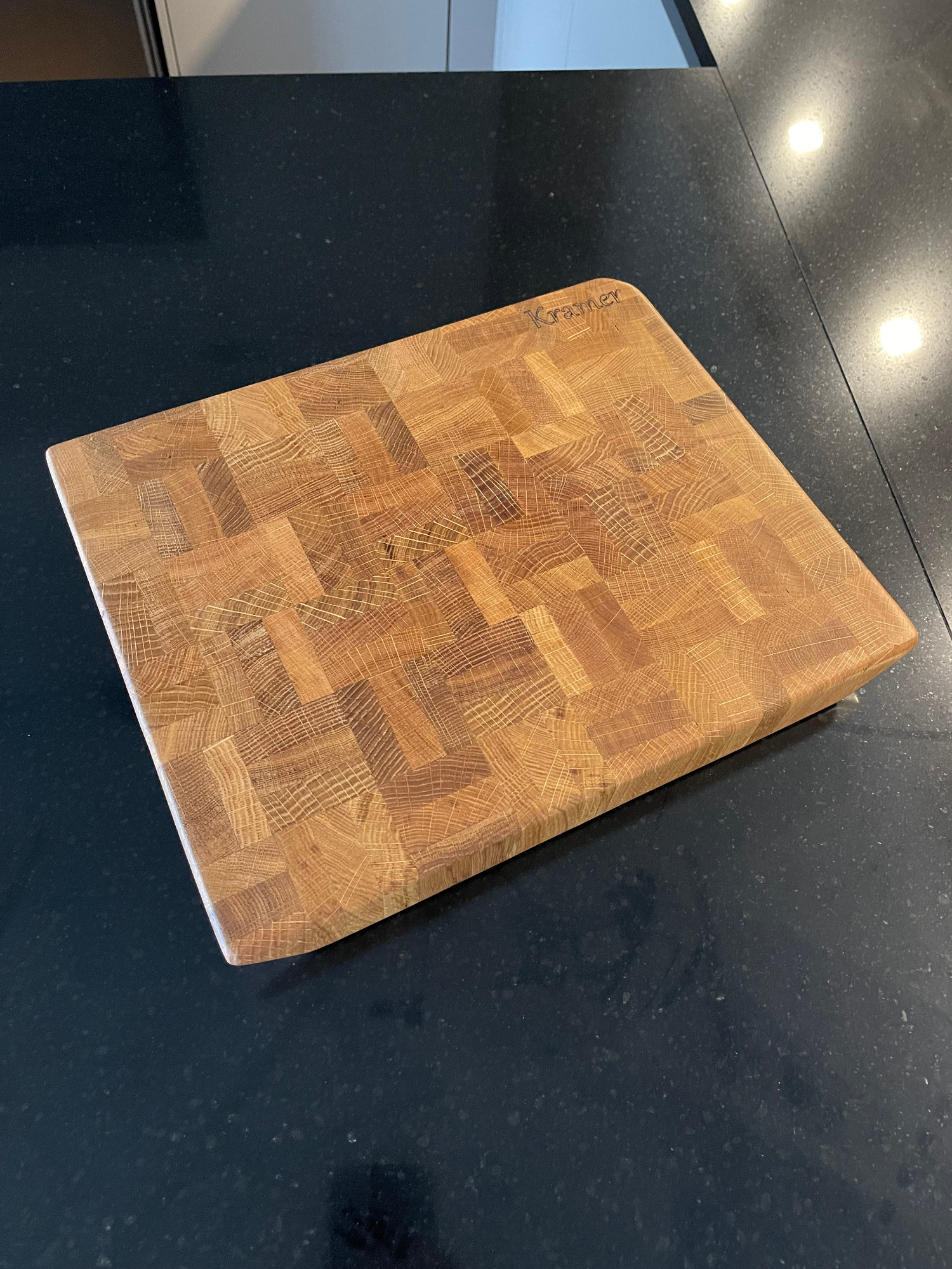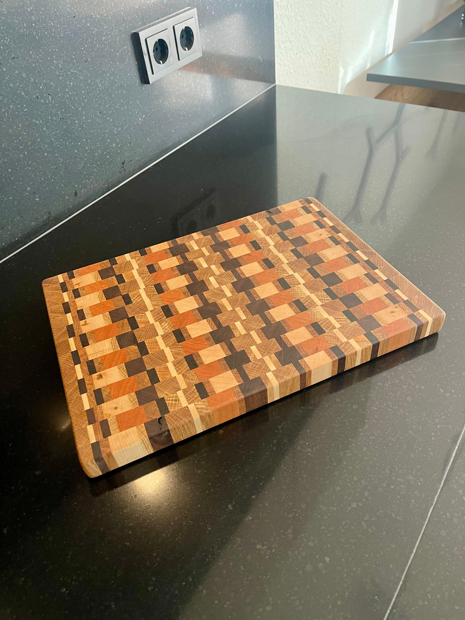 - Diese Art von Schneidbrettern ist sehr langlebig und hygienisch. Die Holzfasern stehen in aufrechter Position, was die Oberfläche härter macht und weniger Feuchtigkeit aufnimmt.
