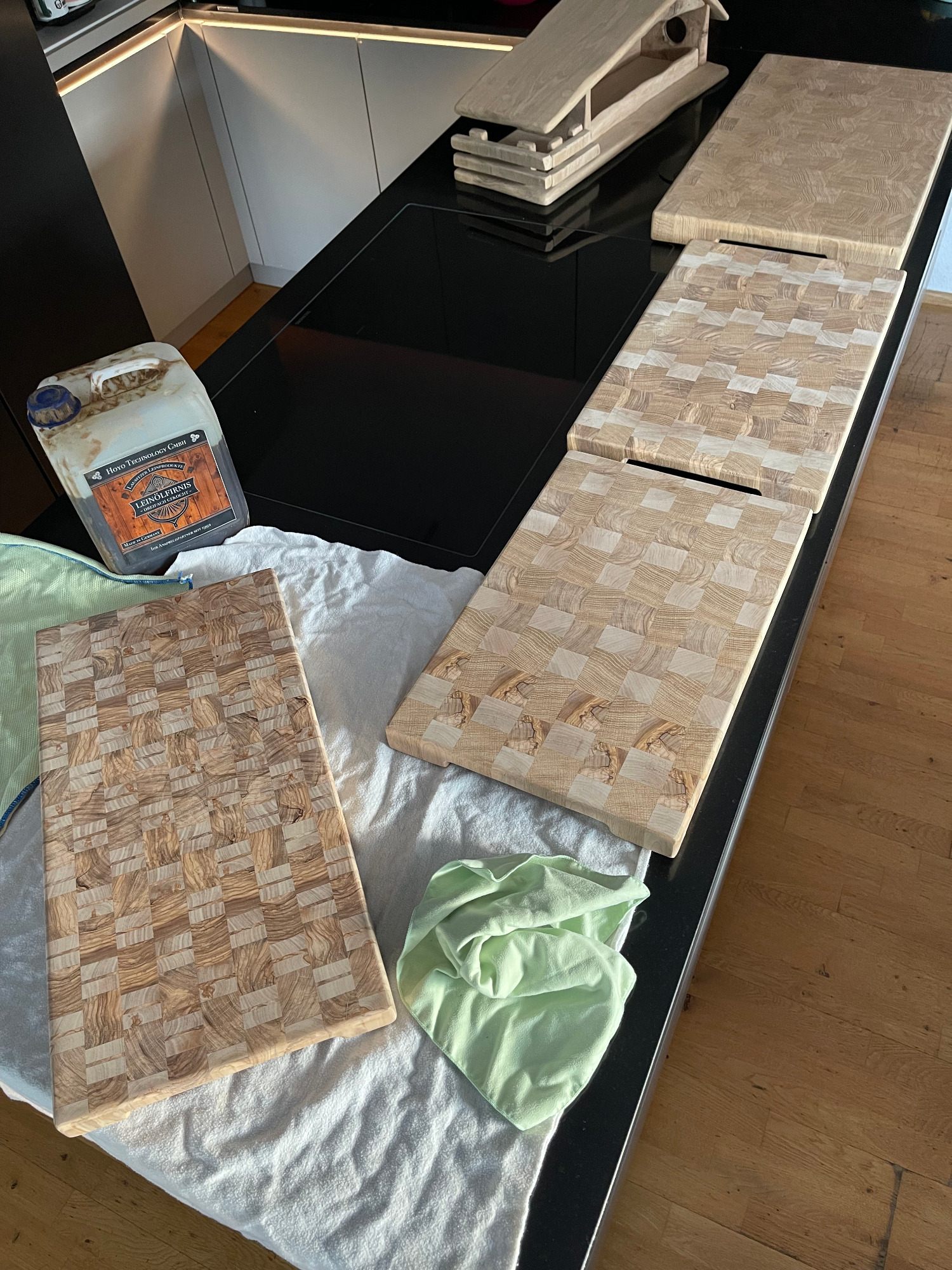 - Pflege: Stirnholz muss mindestens einmal im Jahr (oder bei Bedarf öfter) mit gutem Leinöl eingeölt werden. Die regelmäßige Pflege ist wichtig, um das Holz vor dem Austrocknen zu schützen.