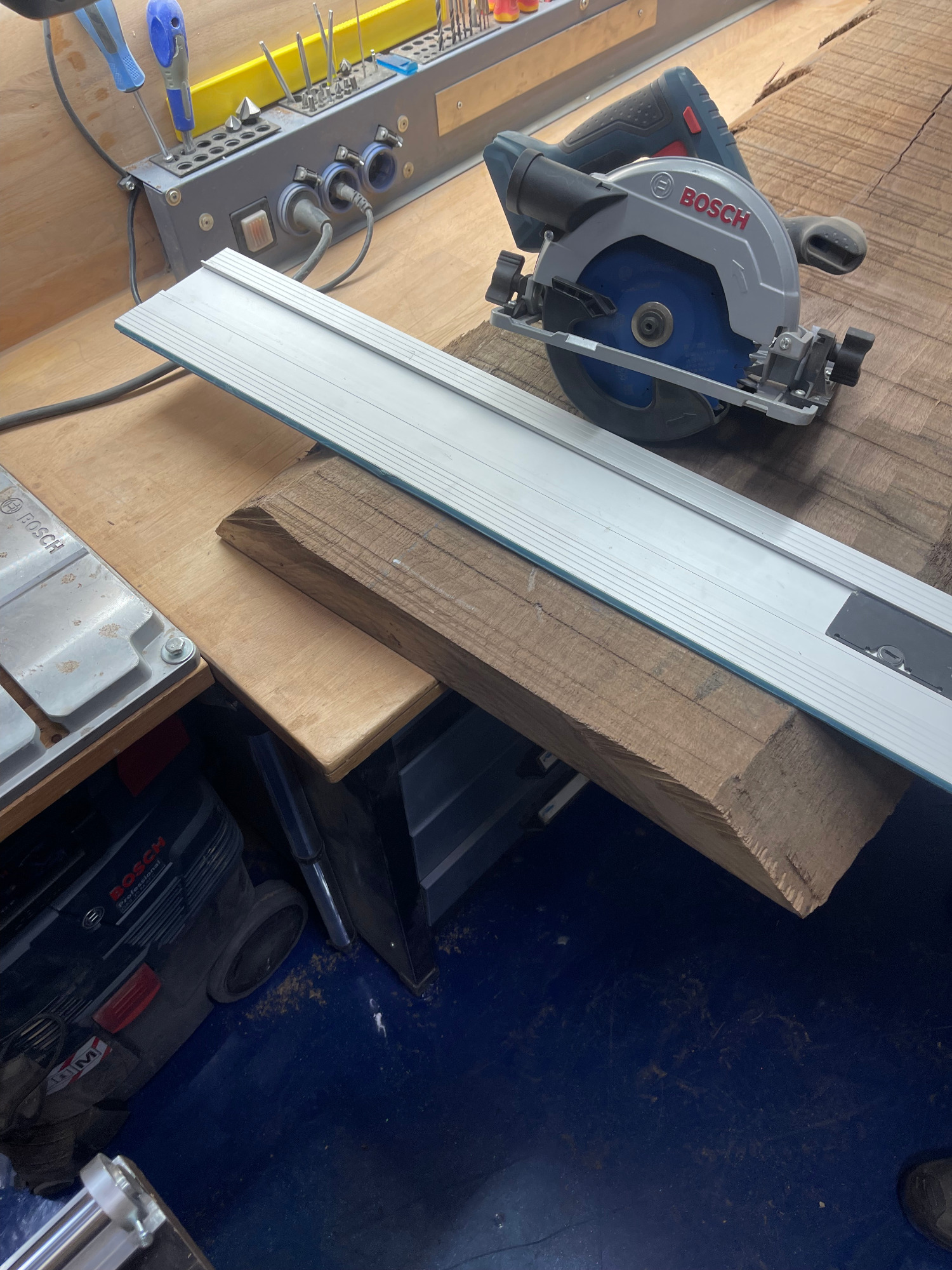 Holzbohlen auftrennen / sägen / erster Schnitt